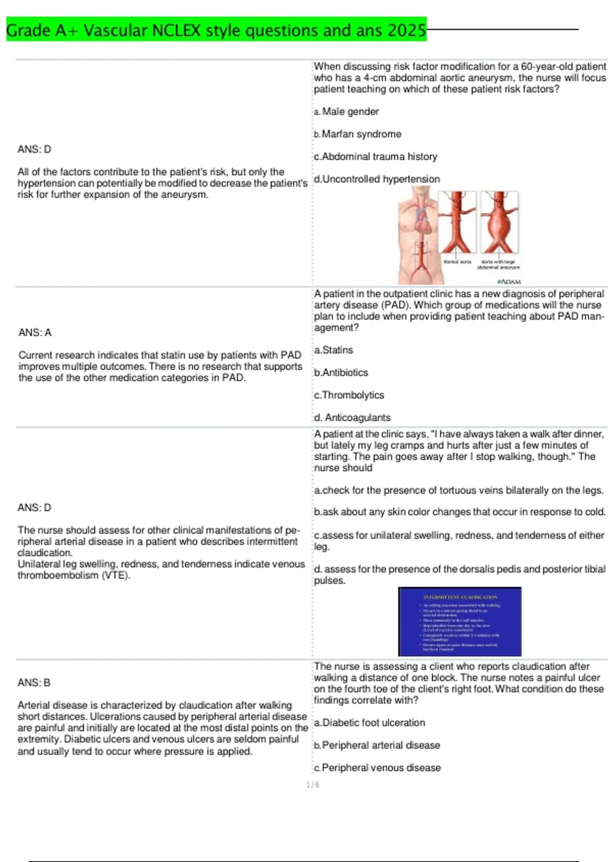 , Grade A+ Vascular NCLEX style questions and ans 2025