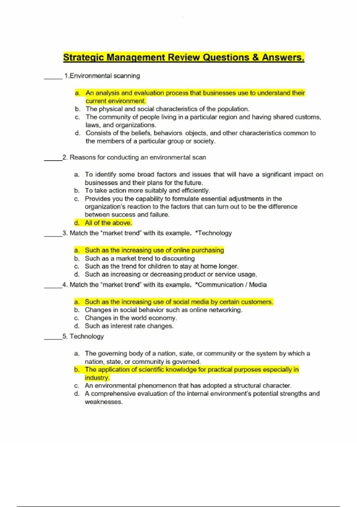Strategic Management Review Questions & Answers.Strategic Management Review Questions & Answers.