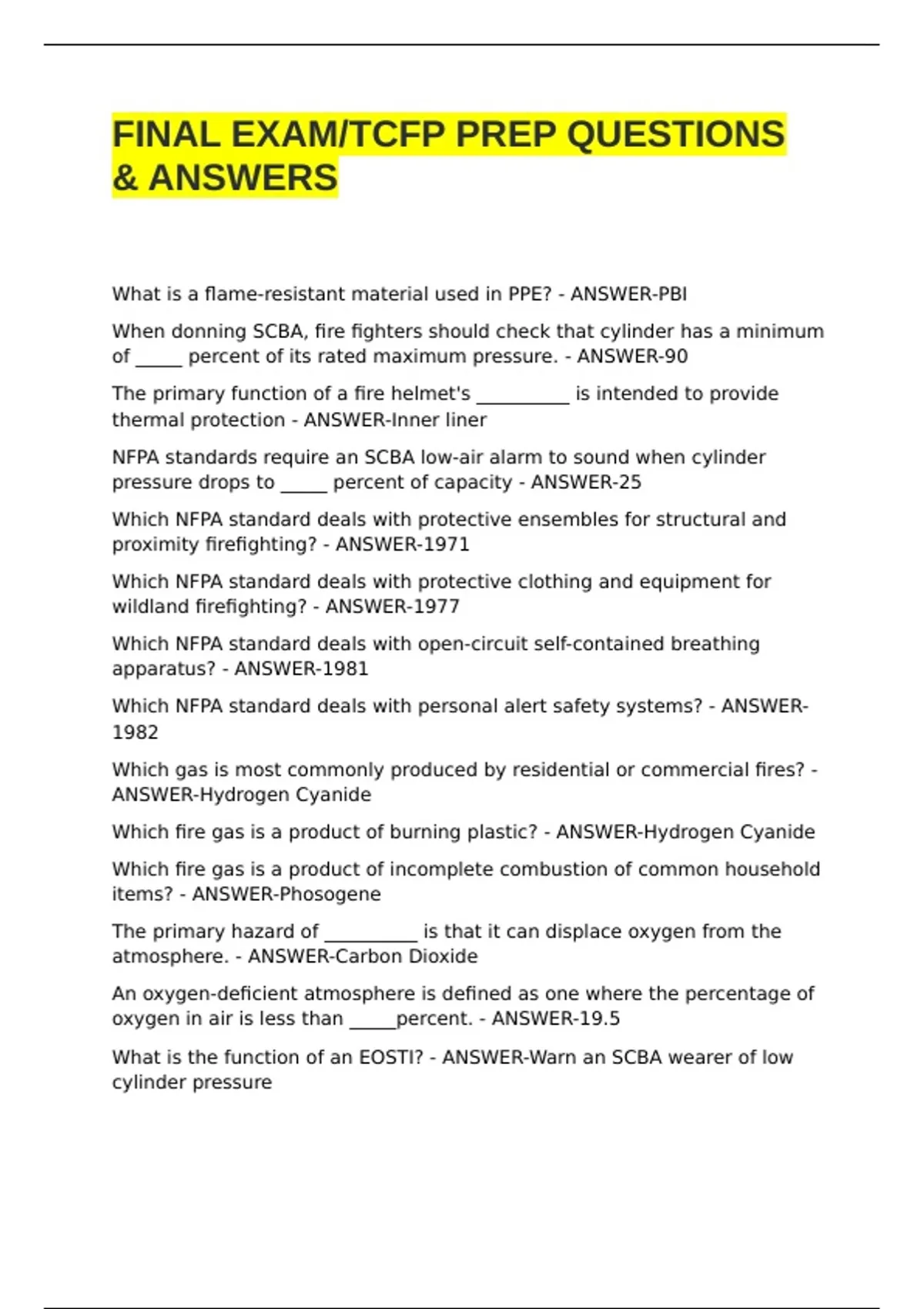 Which fire gas is a product of burning plastic? - ANSWER-Hydrogen Cyanide