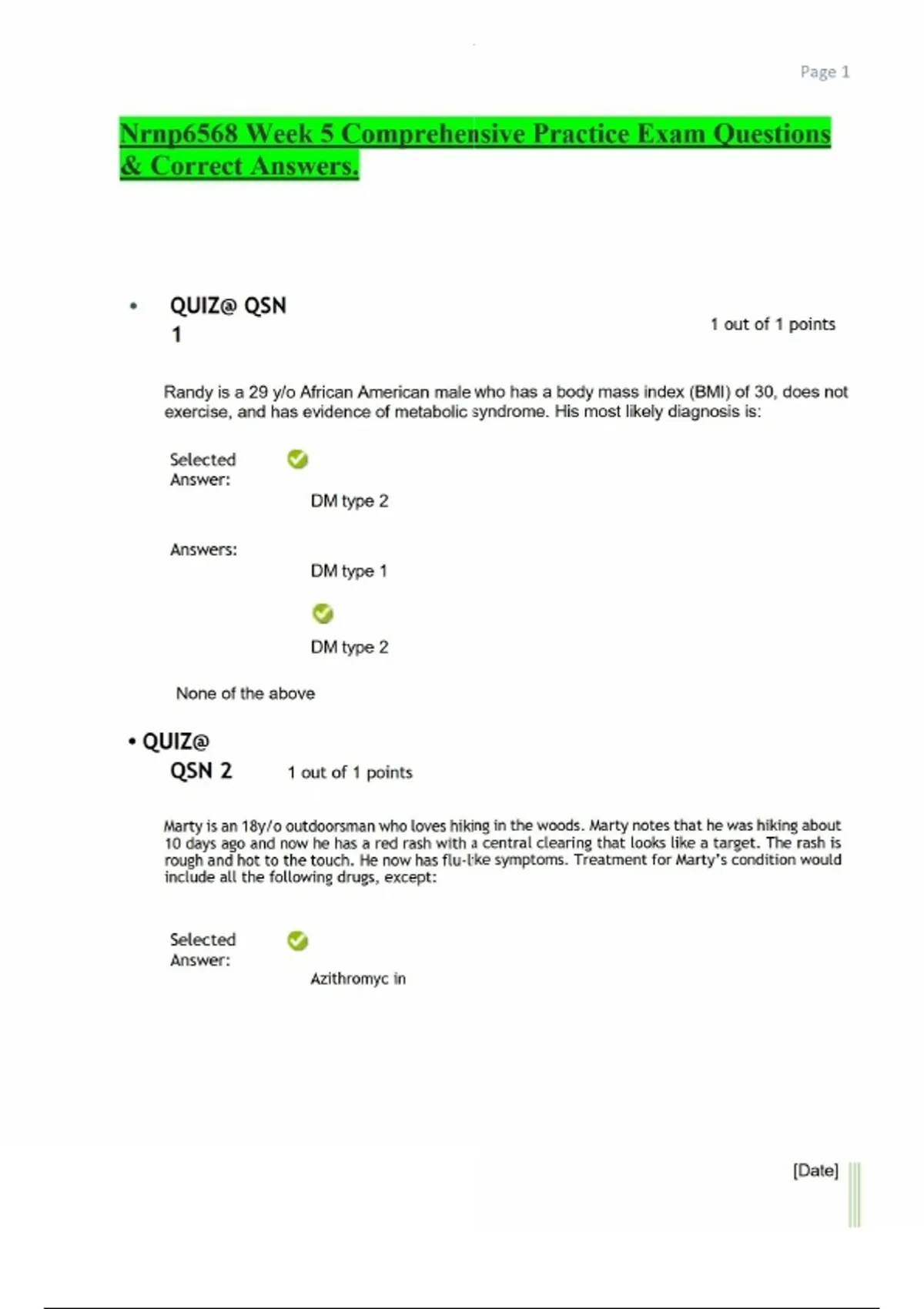 Nrnp 6568 Week 5 Comprehensive Practice Exam Questions & Correct Answers.