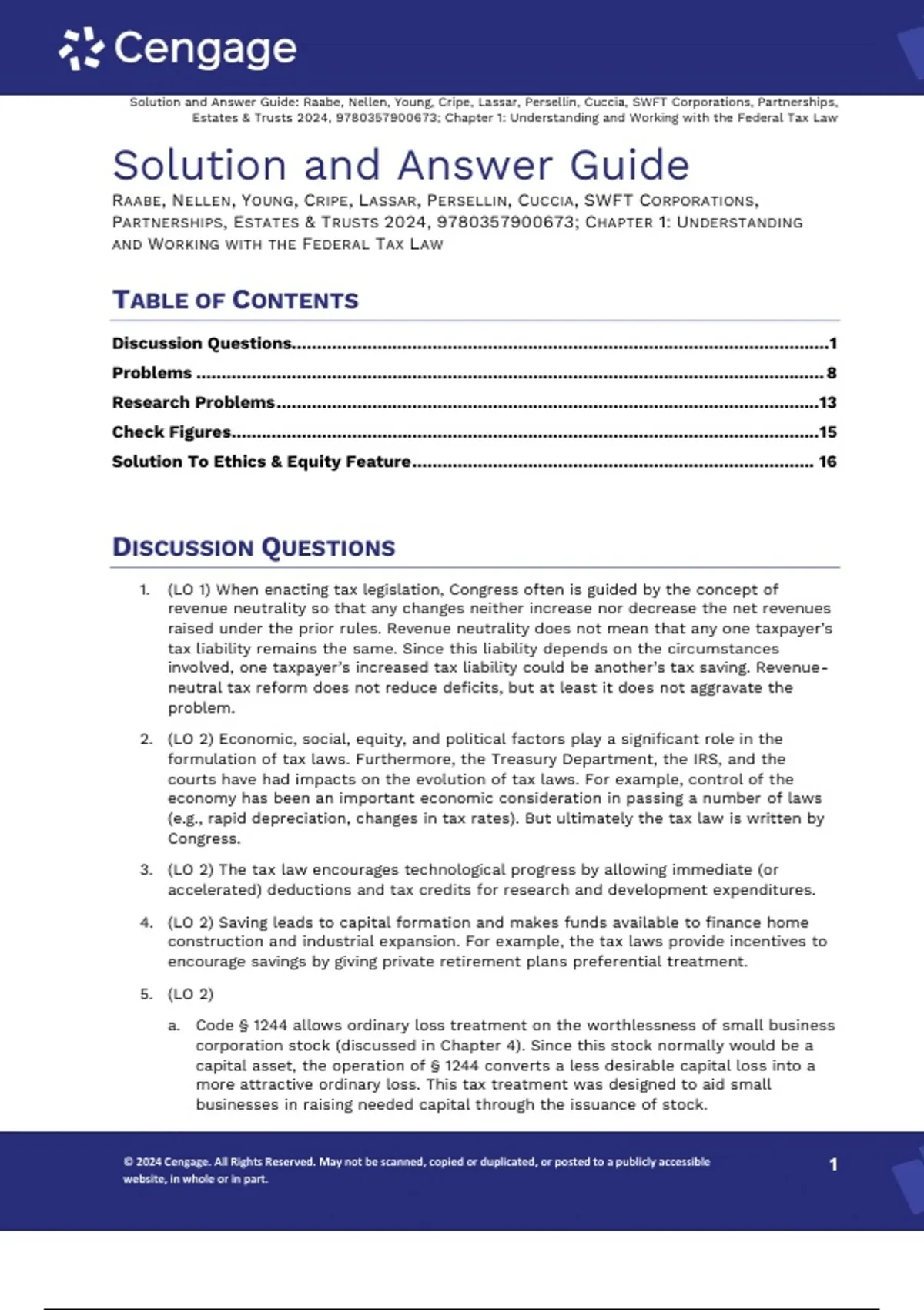 , Solution and Answer Guide: Raabe, Nellen, Young, Cripe, Lassar, Persellin, Cuccia, SWFT Corporations, Partnerships,