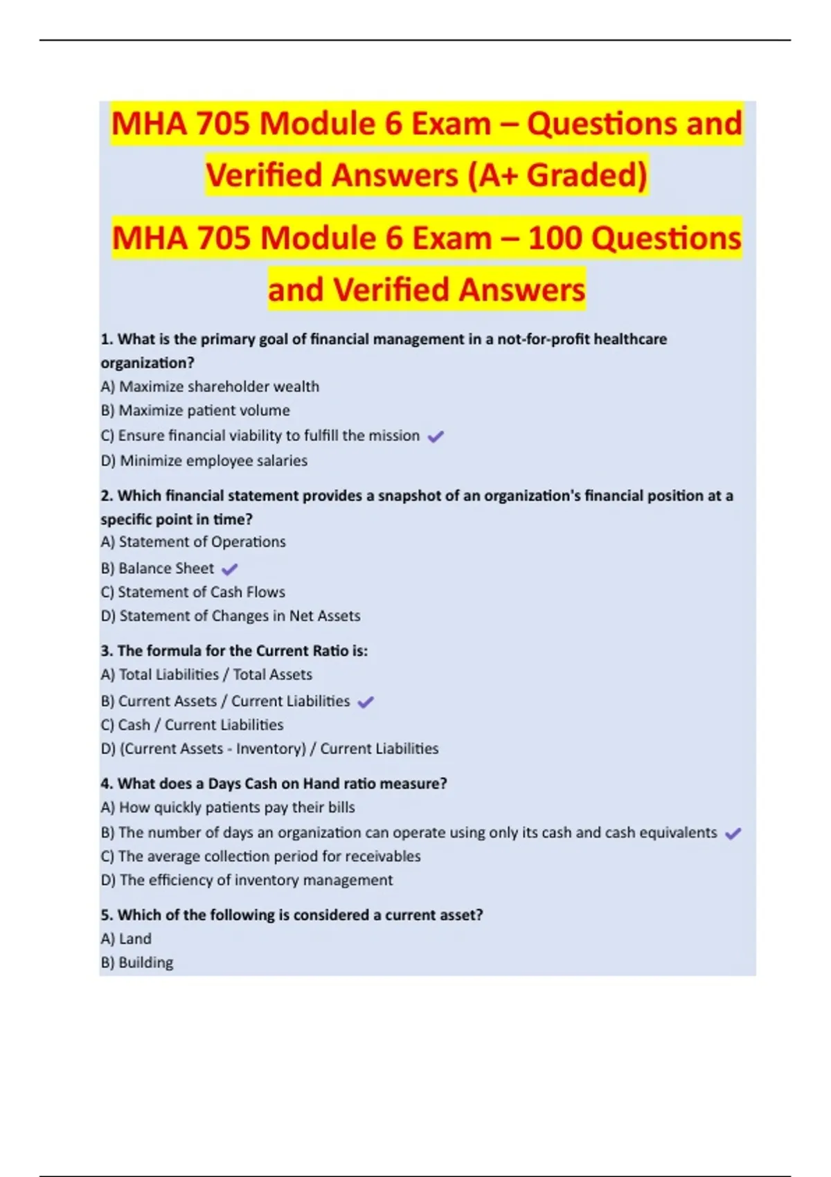 MHA 705 Module 6 Exam – Questions and Verified Answers (A+ Graded)