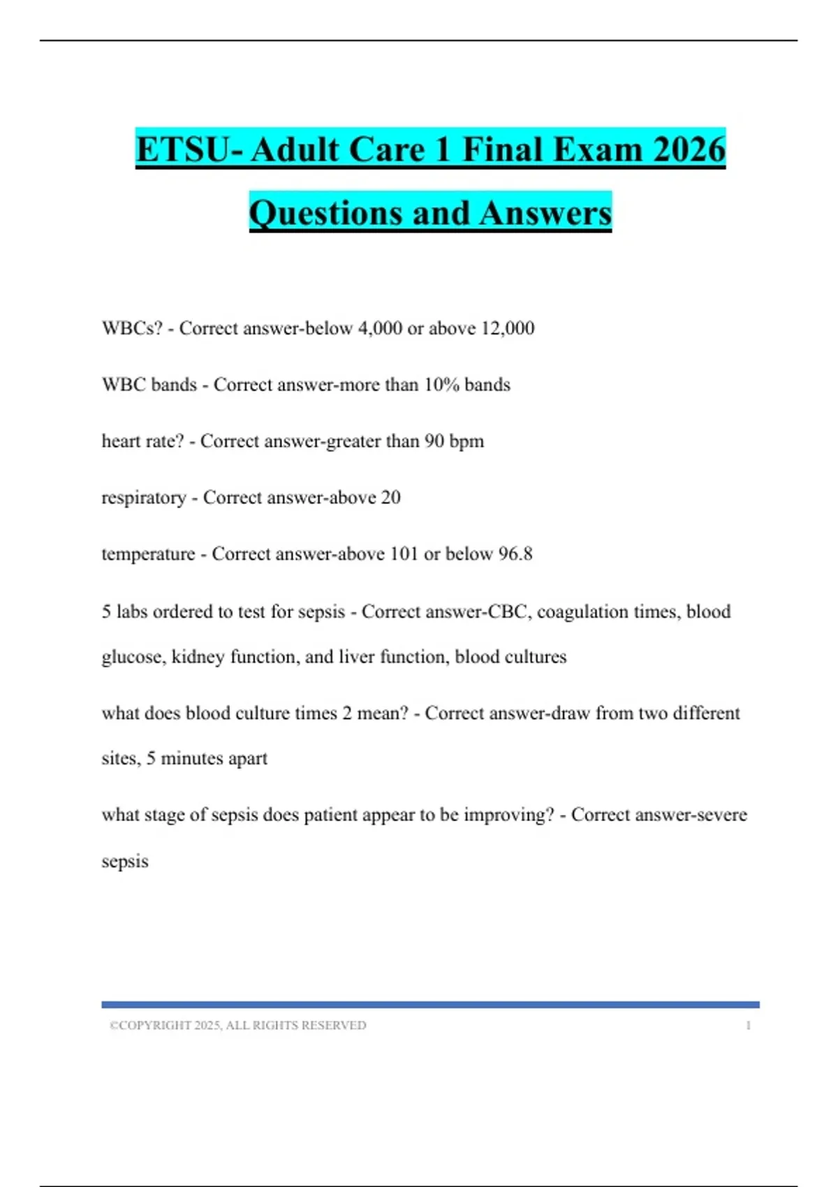 ETSU- Adult Care 1 Final Exam 2026