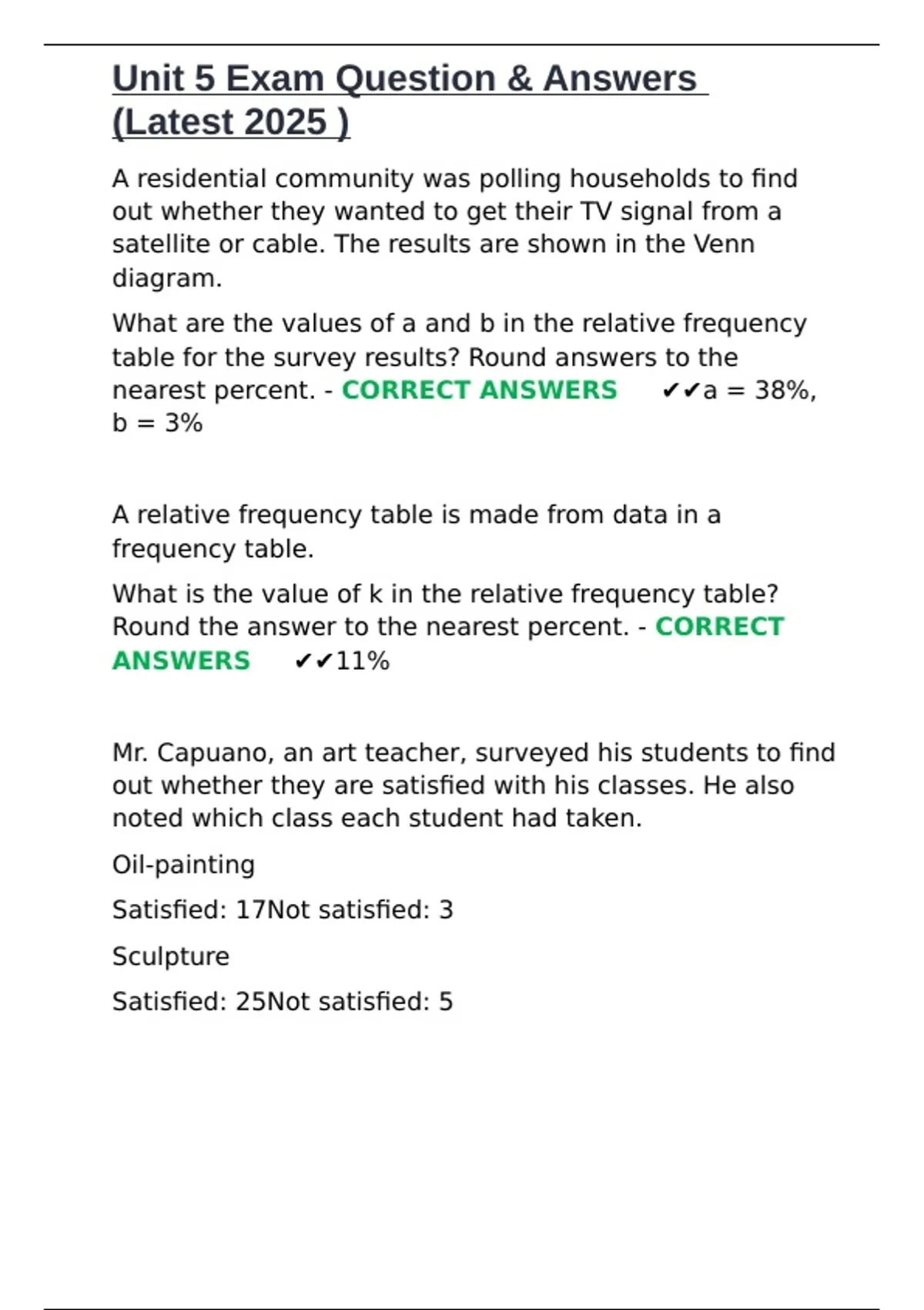 nearest percent. - CORRECT ANSWERS ✔✔a = 38%,