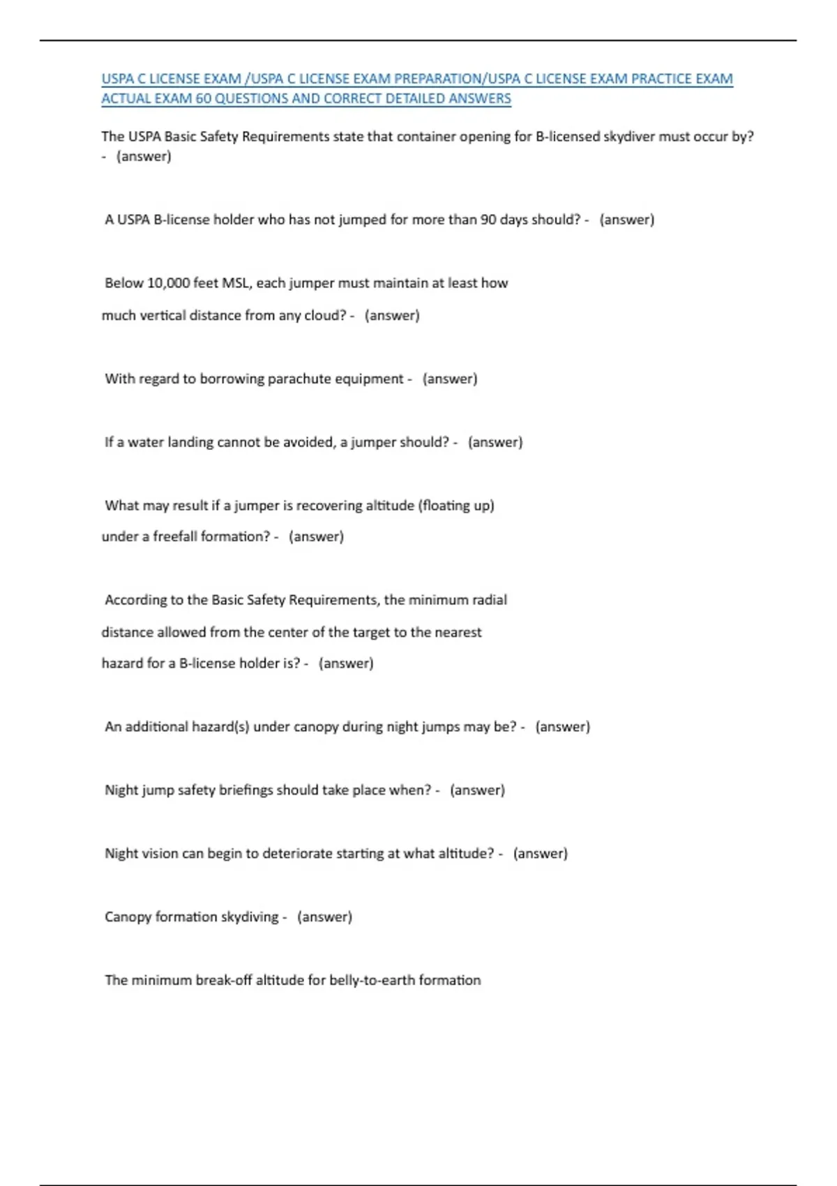 USPA C LICENSE EXAM /USPA C LICENSE EXAM PREPARATION/USPA C LICENSE EXAM PRACTICE EXAM