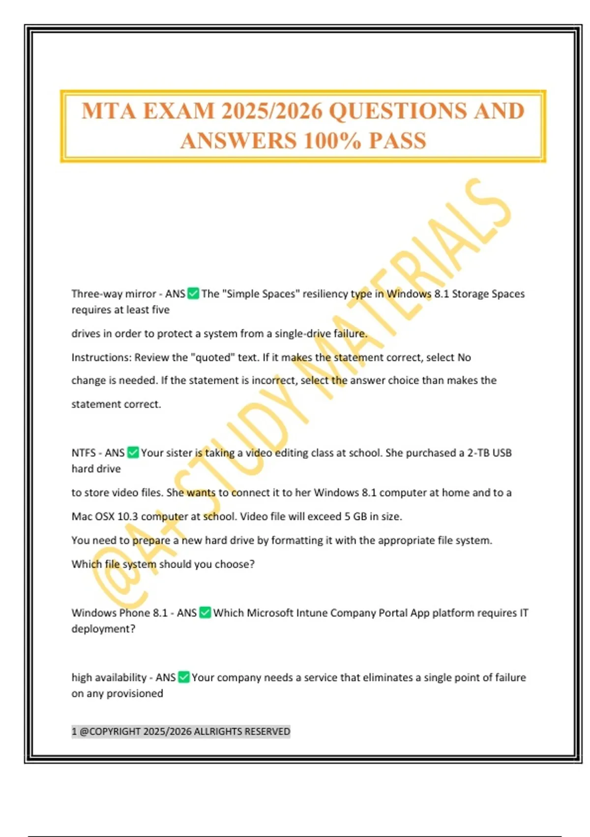 MTA EXAM 2025/2026 QUESTIONS AND