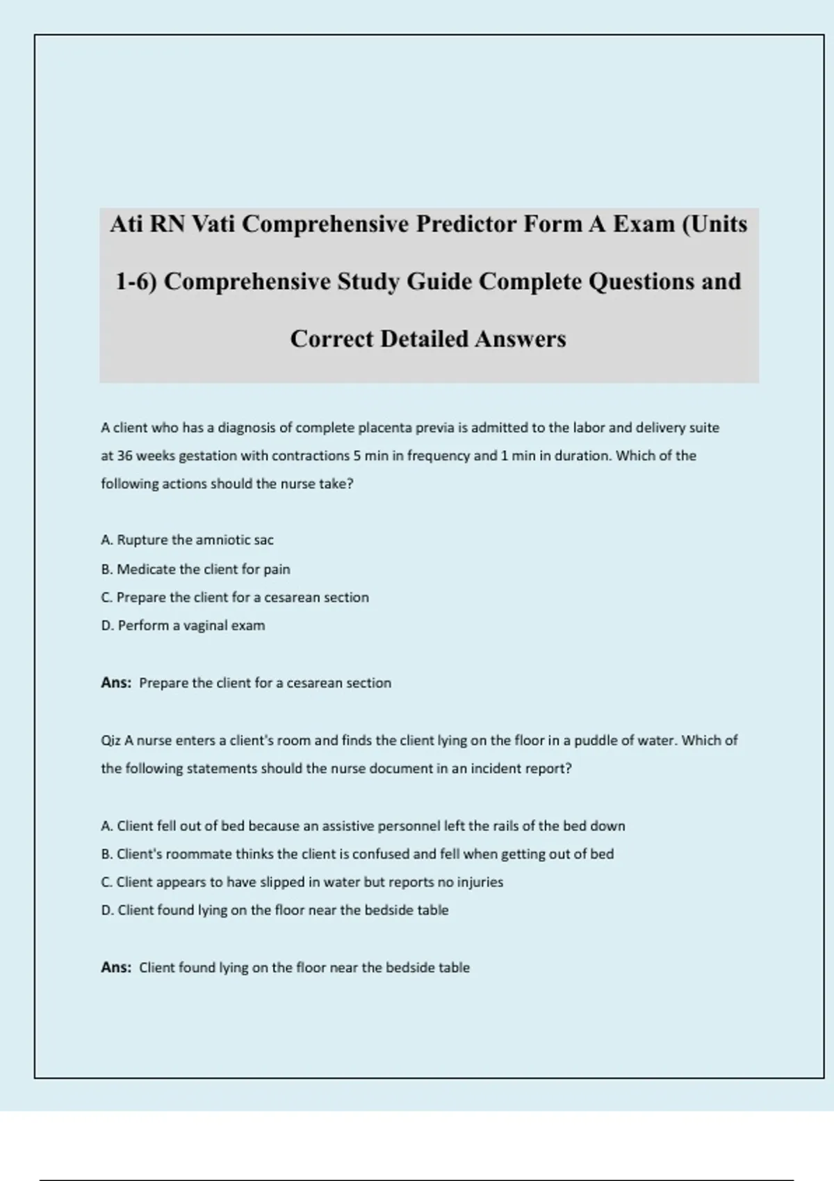 Ans: Prepare the client for a cesarean section