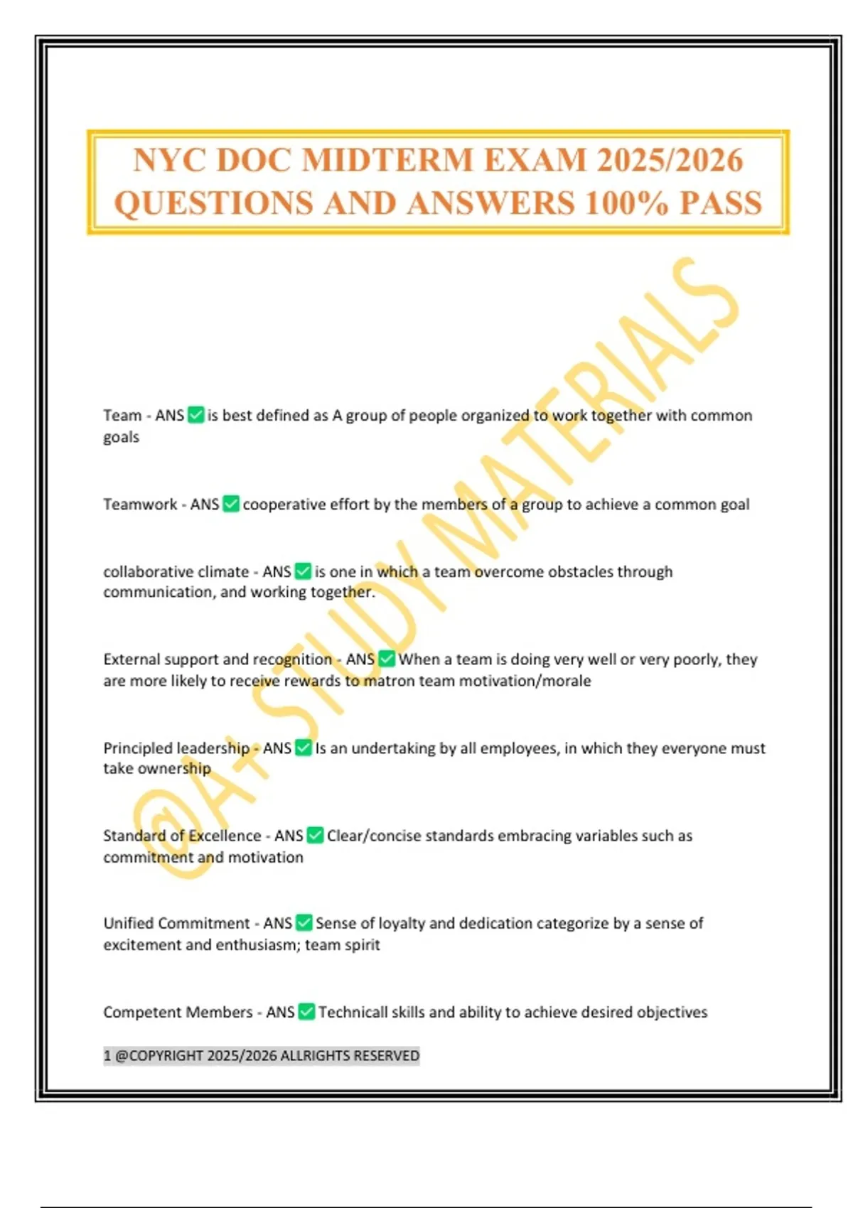 QUESTIONS AND ANSWERS 100% PASS