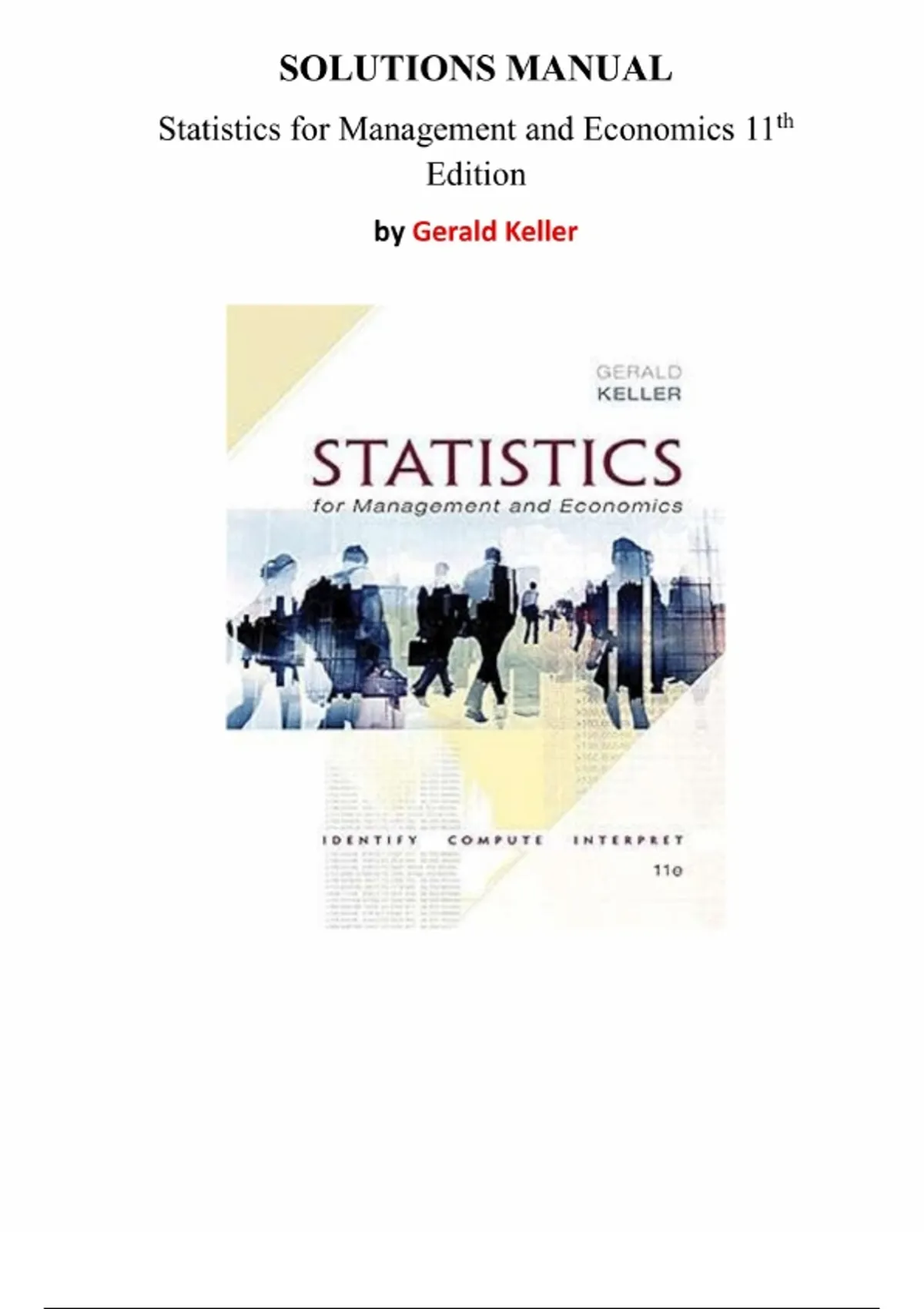 Statistics for Management and Economics, 11th Edition – Gerald Keller | Complete Solutions Manual (Chapters 1–18)