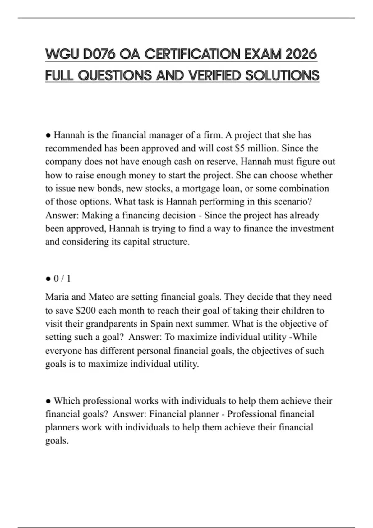 WGU D076 OA CERTIFICATION EXAM 2026 FULL QUESTIONS AND VERIFIED SOLUTIONS