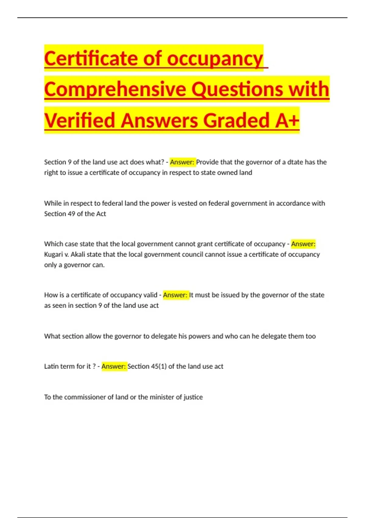 How is a certificate of occupancy valid - Answer: It must be issued by the governor of the state