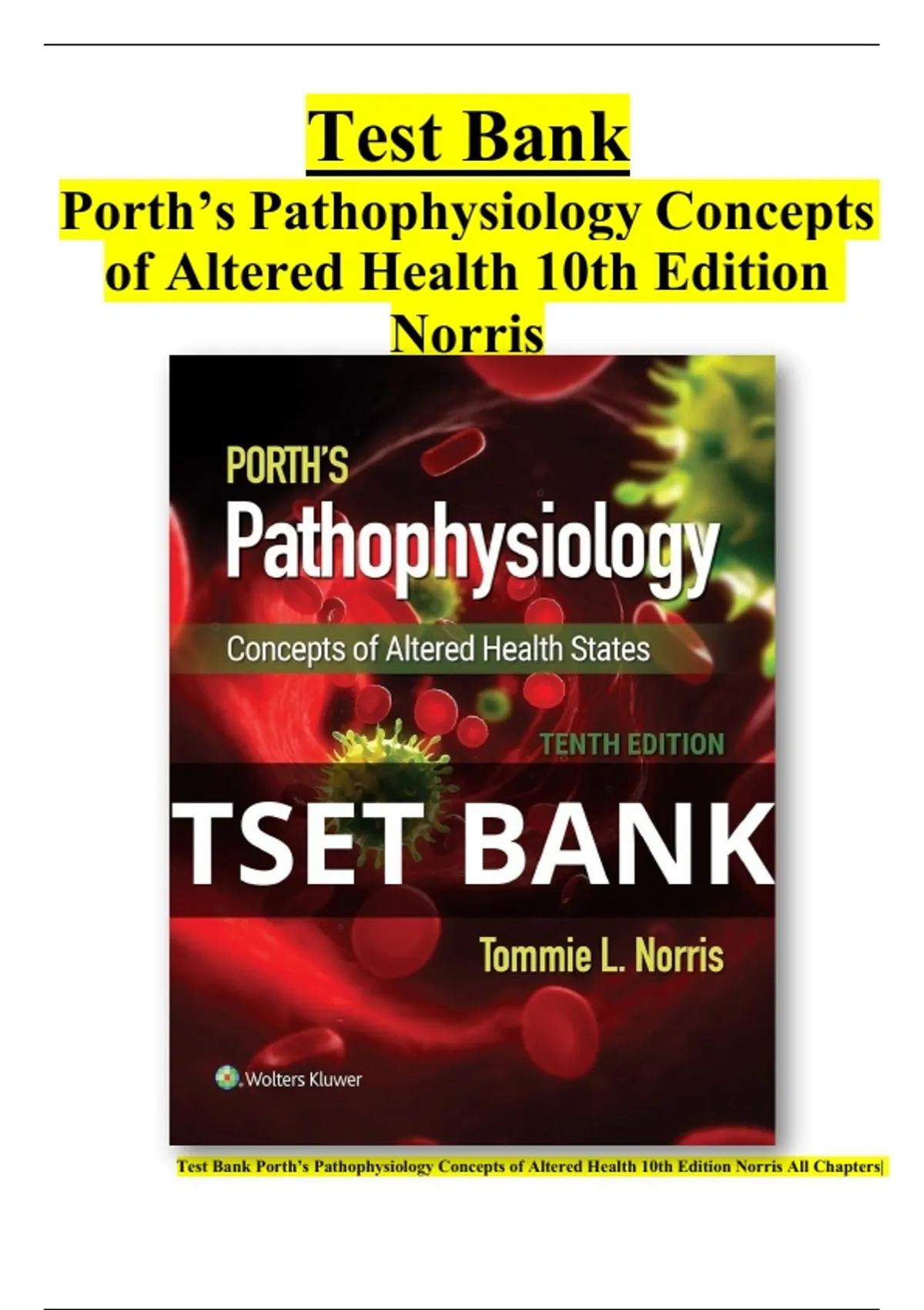 , TEST BANK FOR PORTH'S PATHOPHYSIOLOGY 10TH EDITION BY NORRIS