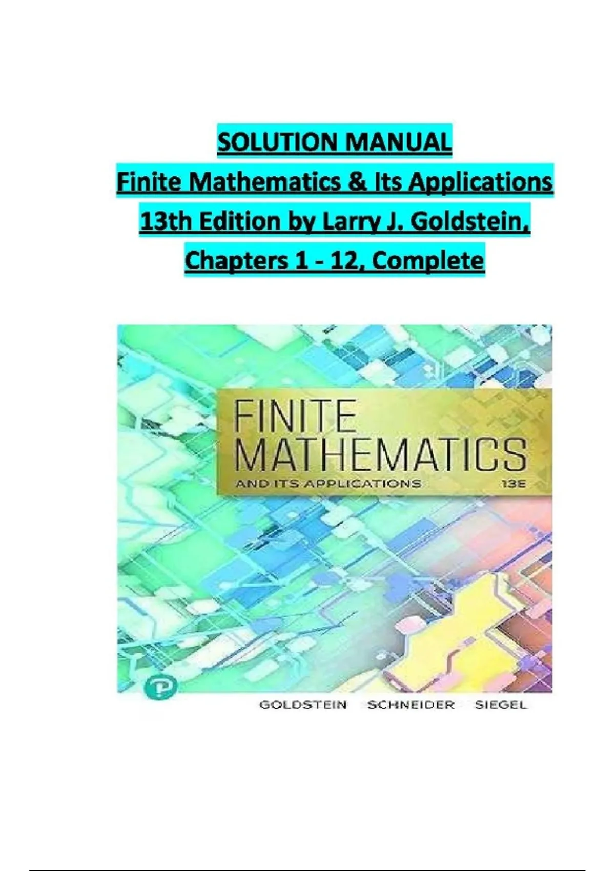This complete solution manual provides step-by-step solutions to all problems from Finite Mathematics and Its Applications (13th Edition) by Larry J. Goldstein. Covering chapters 1 through 12, it includes detailed explanations for topics such as linear equations, matrices, linear programming, probability, statistics, and finance applications. Ideal for students seeking to understand problem-solving methods, verify answers, and strengthen conceptual understanding throughout the course. Finite Mathematics and Its Applications – 13th Edition by Larry J. Goldstein | Complete Solution Manual (Chapters 1–12)Finite Mathematics and Its Applications – 13th Edition by Larry J. Goldstein | Complete Solution Manual (Chapters 1–12)Finite Mathematics and Its Applications – 13th Edition by Larry J. Goldstein | Complete Solution Manual (Chapters 1–12)Finite Mathematics and Its Applications – 13th Edition by Larry J. Goldstein | Complete Solution Manual (Chapters 1–12)