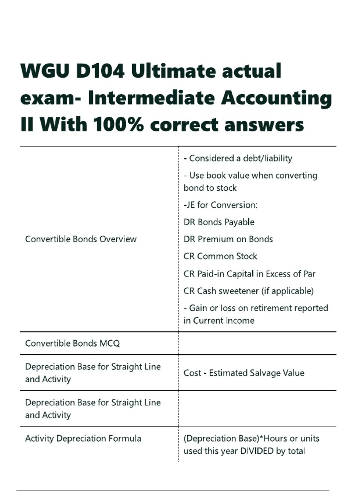WGU D104 Ultimate actual exam- Intermediate Accounting II With 100- correct answers.