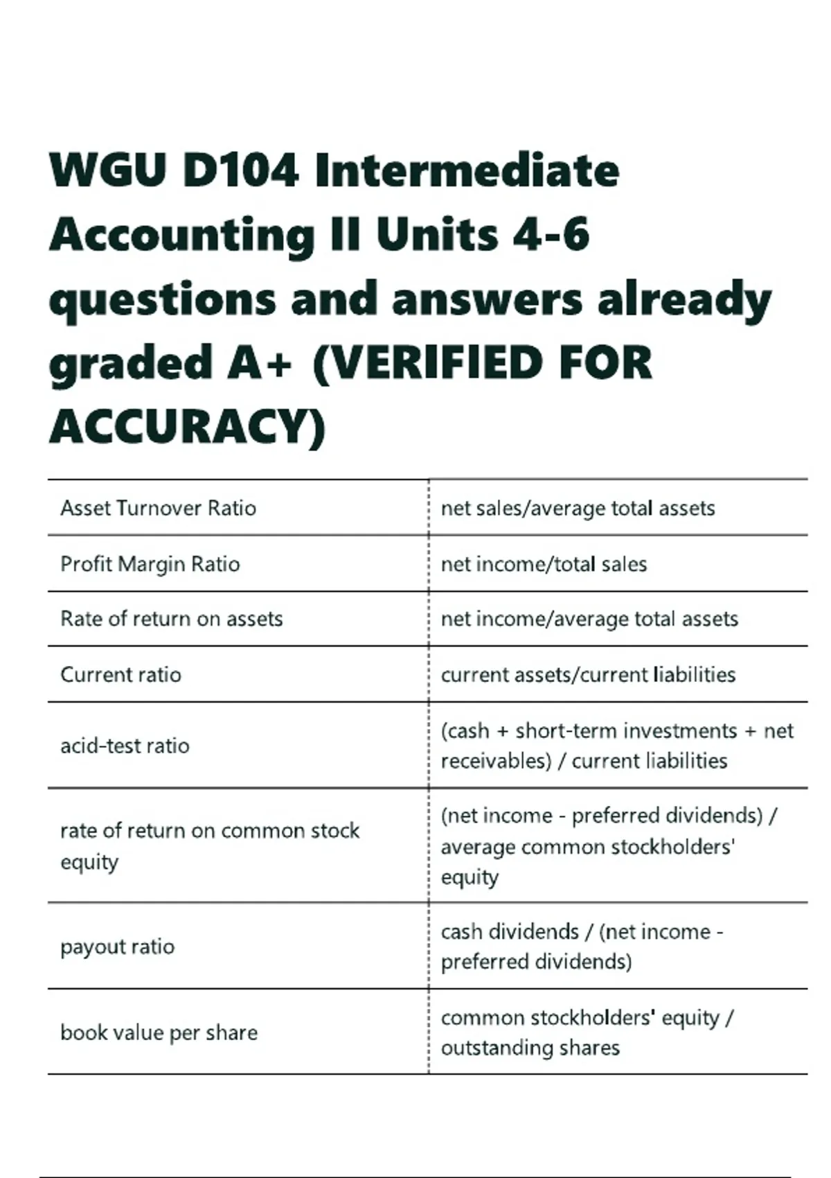 WGU D104 Intermediate Accounting II Units 4-6 questions and answers already graded A+