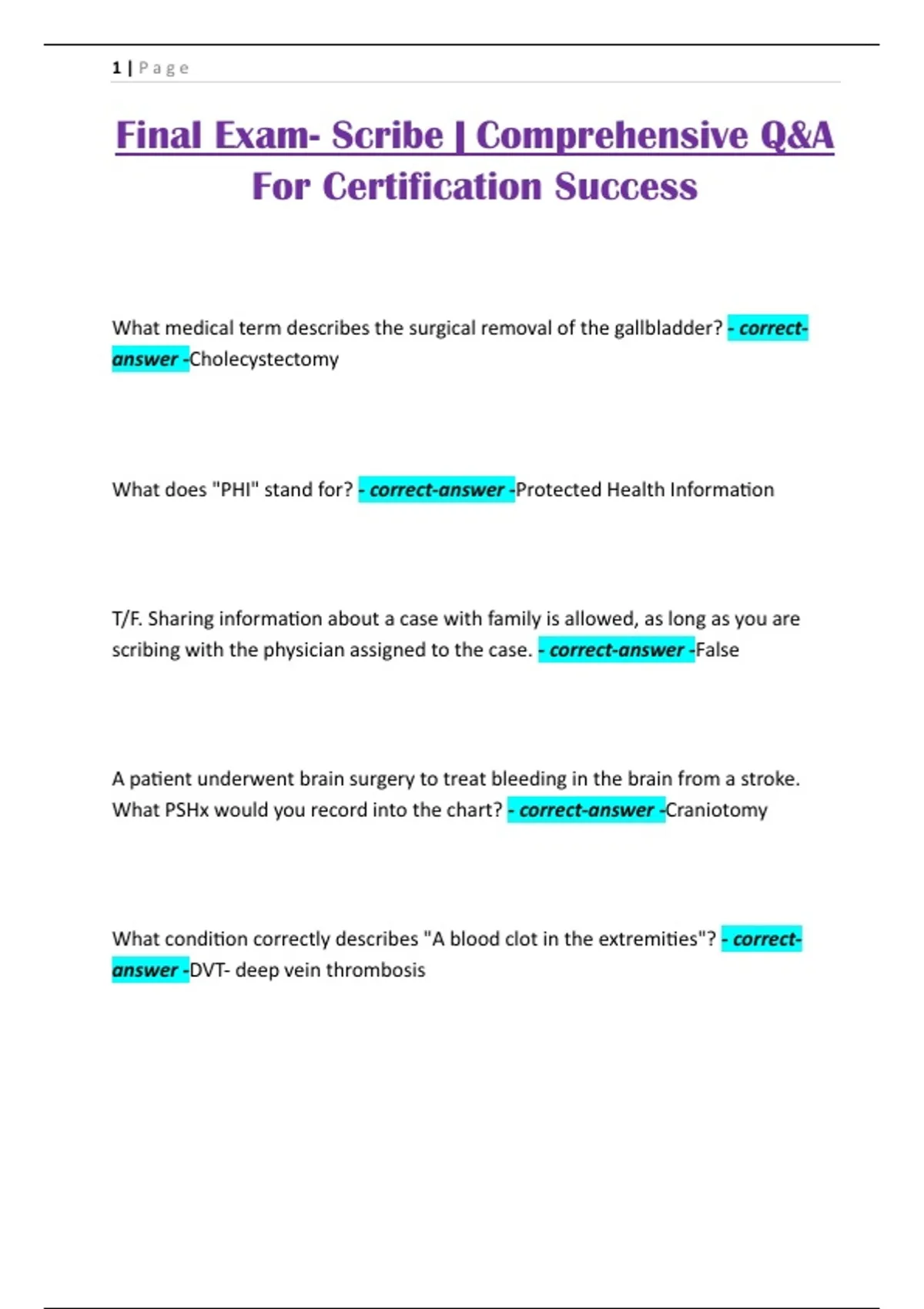 Final Exam- Scribe | Comprehensive Q&A