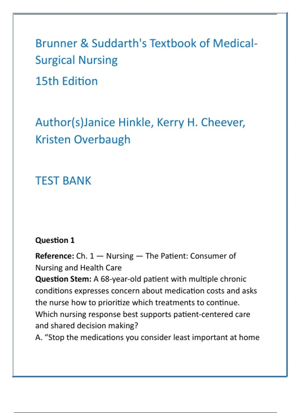 Reference: Ch. 1 — Nursing — The Patient: Consumer of