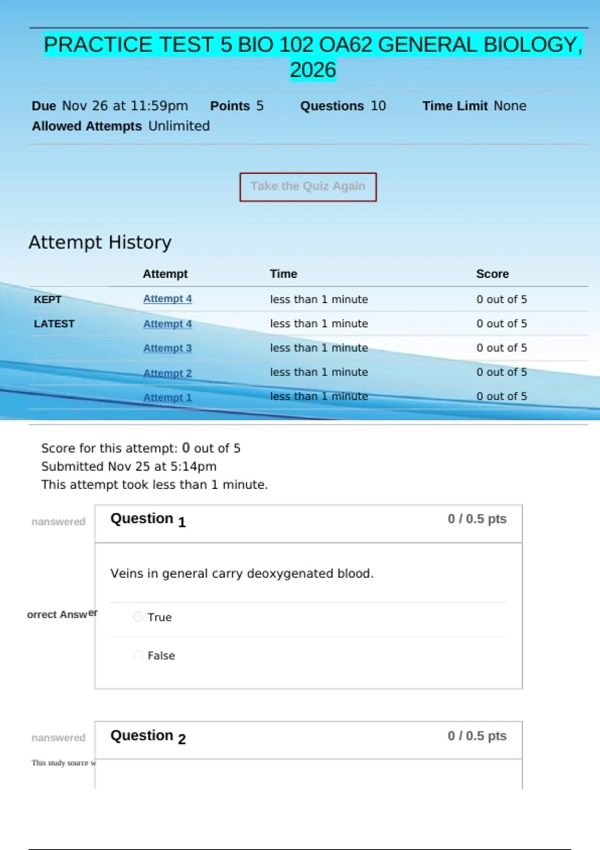 LATEST Attempt 4 less than 1 minute 0 out of 5