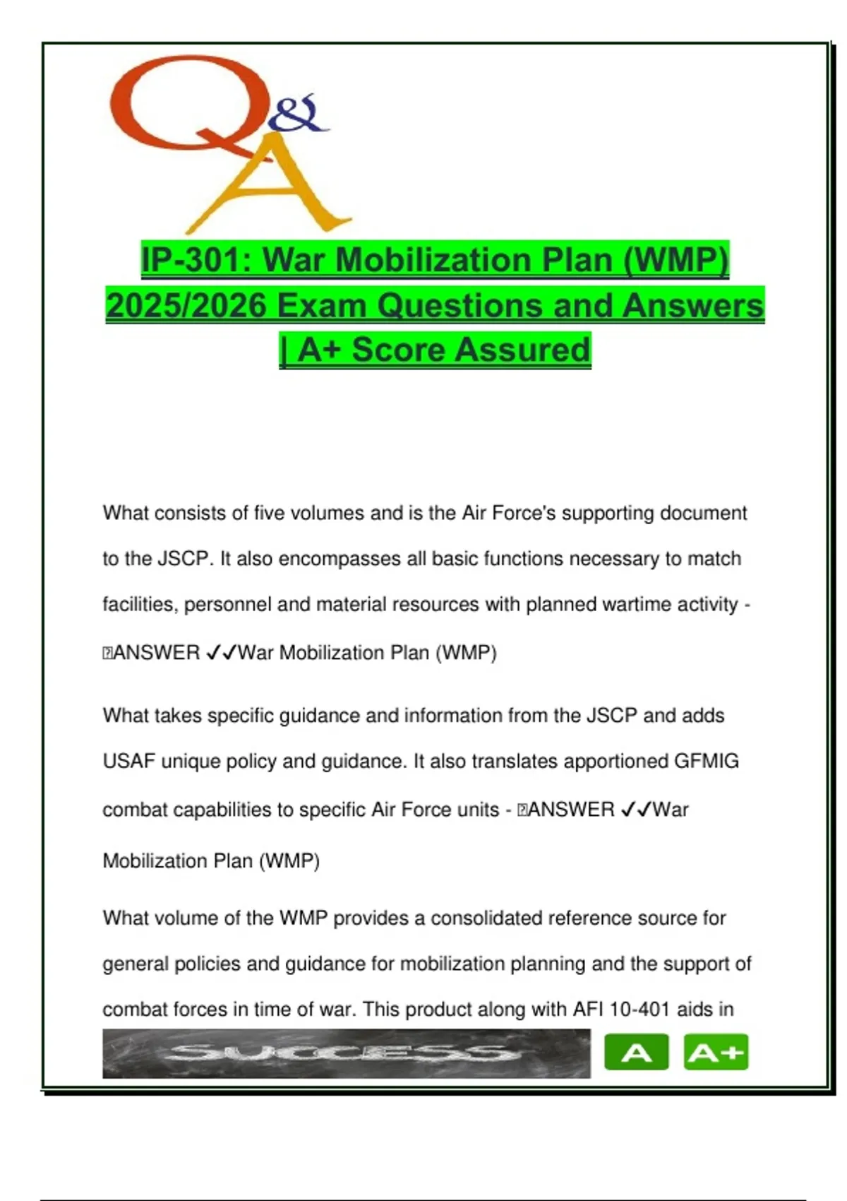 🧠ANSWER ✔✔War Mobilization Plan (WMP)