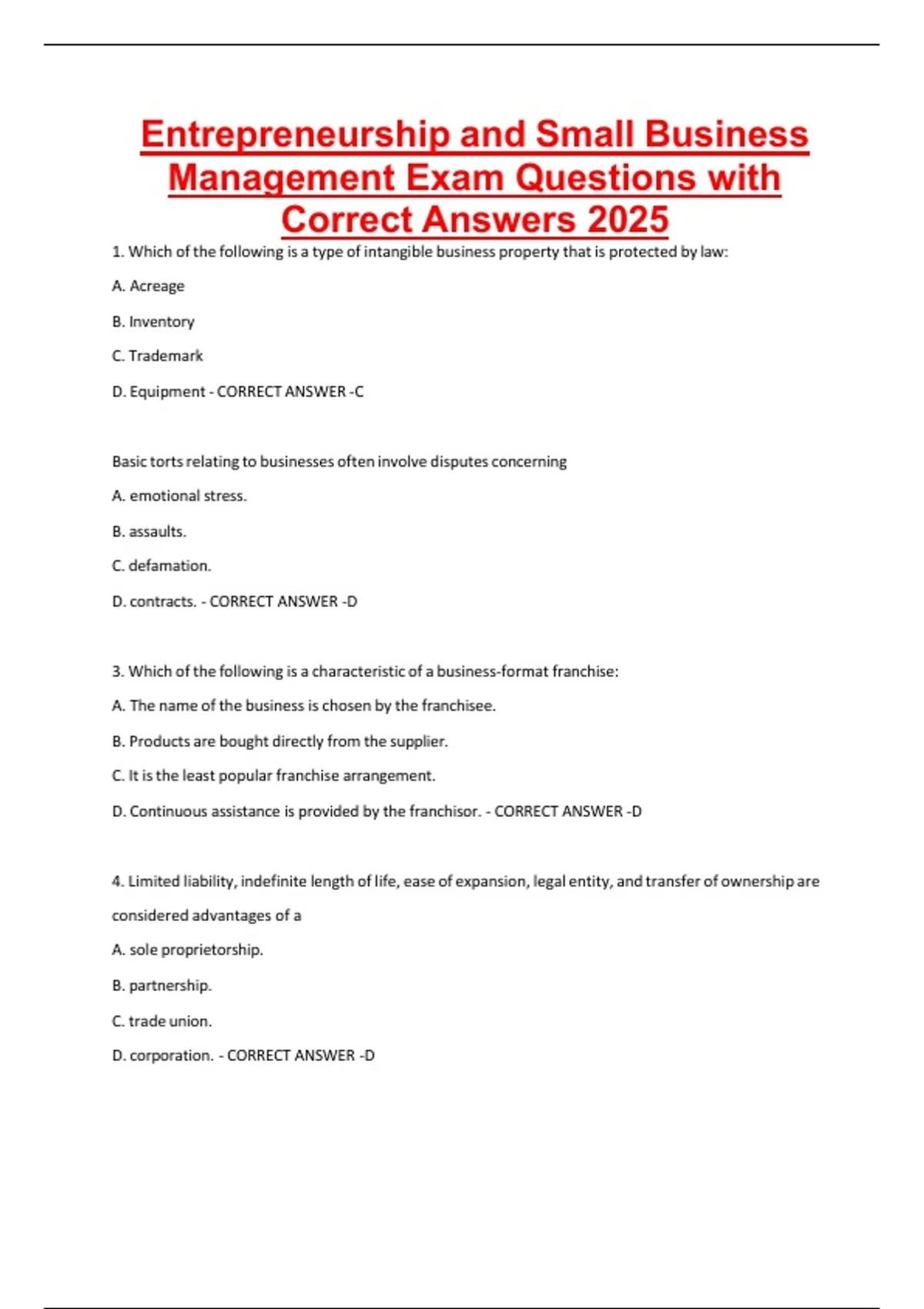 Correct Answers 2025