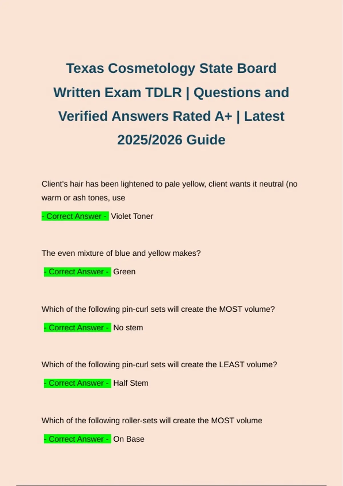 Texas Cosmetology State Board Written Exam | Questions and Verified Answers Rated A+ | 100% Correct | 2025/2026 Guide