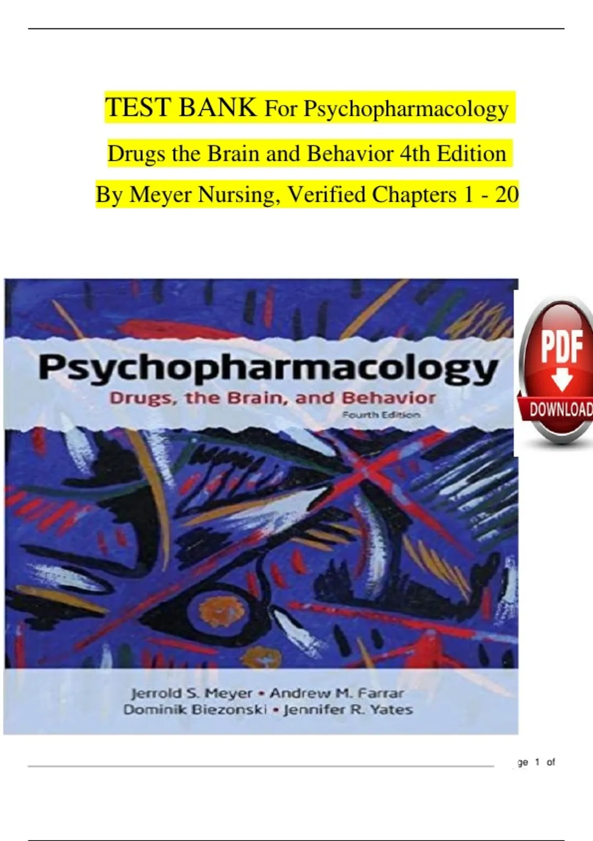Test Bank For Psychopharmacology Drugs the Brain and Behavior 4th Edition By Meyer Nursing