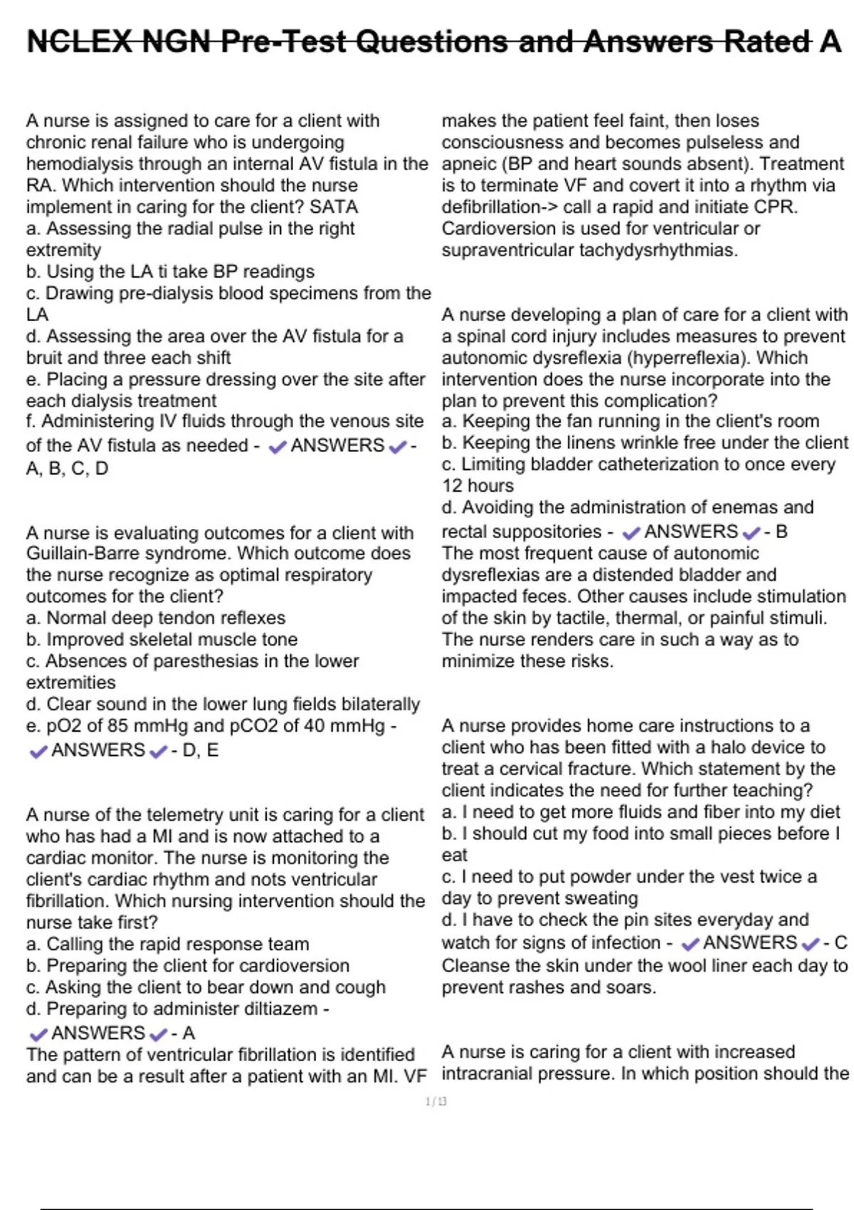NCLEX NGN Pre-Test Questions and Answers Rated A