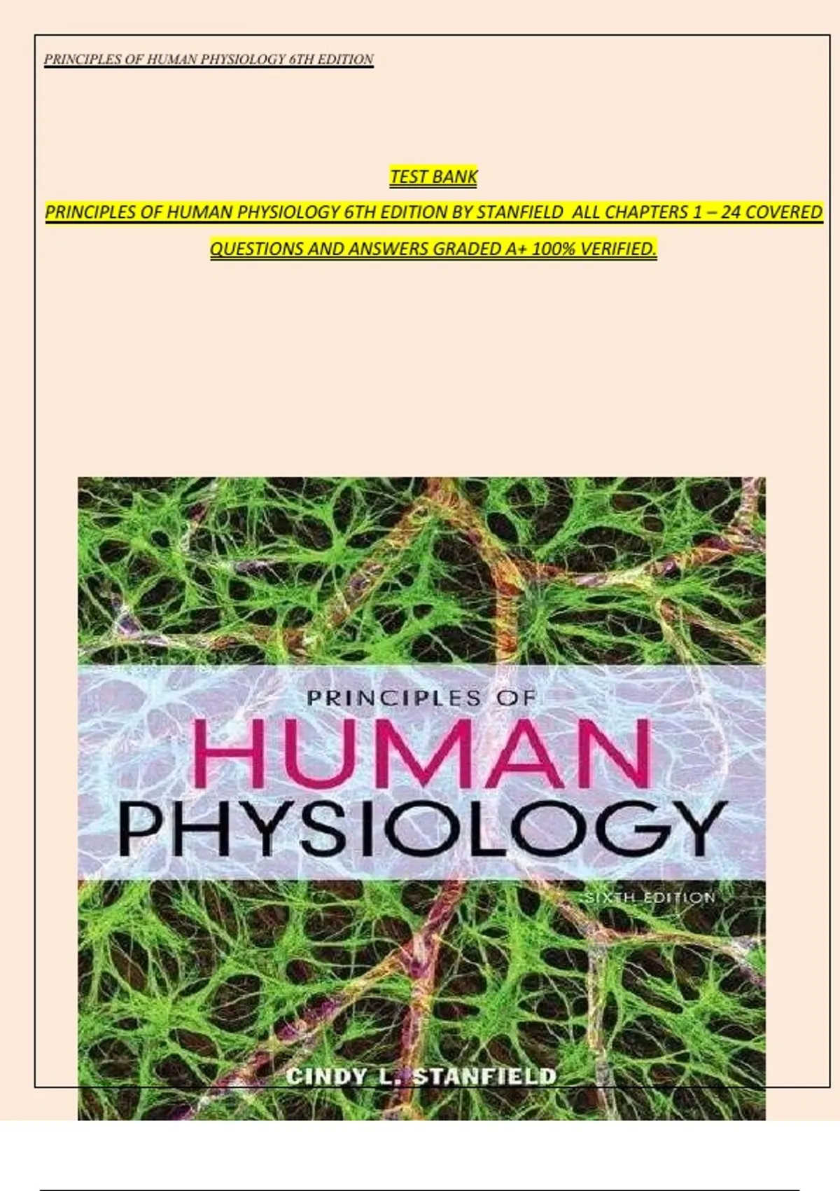 PRINCIPLES OF HUMAN PHYSIOLOGY 6TH EDITION BY STANFIELD ALL CHAPTERS 1 – 24 COVERED
