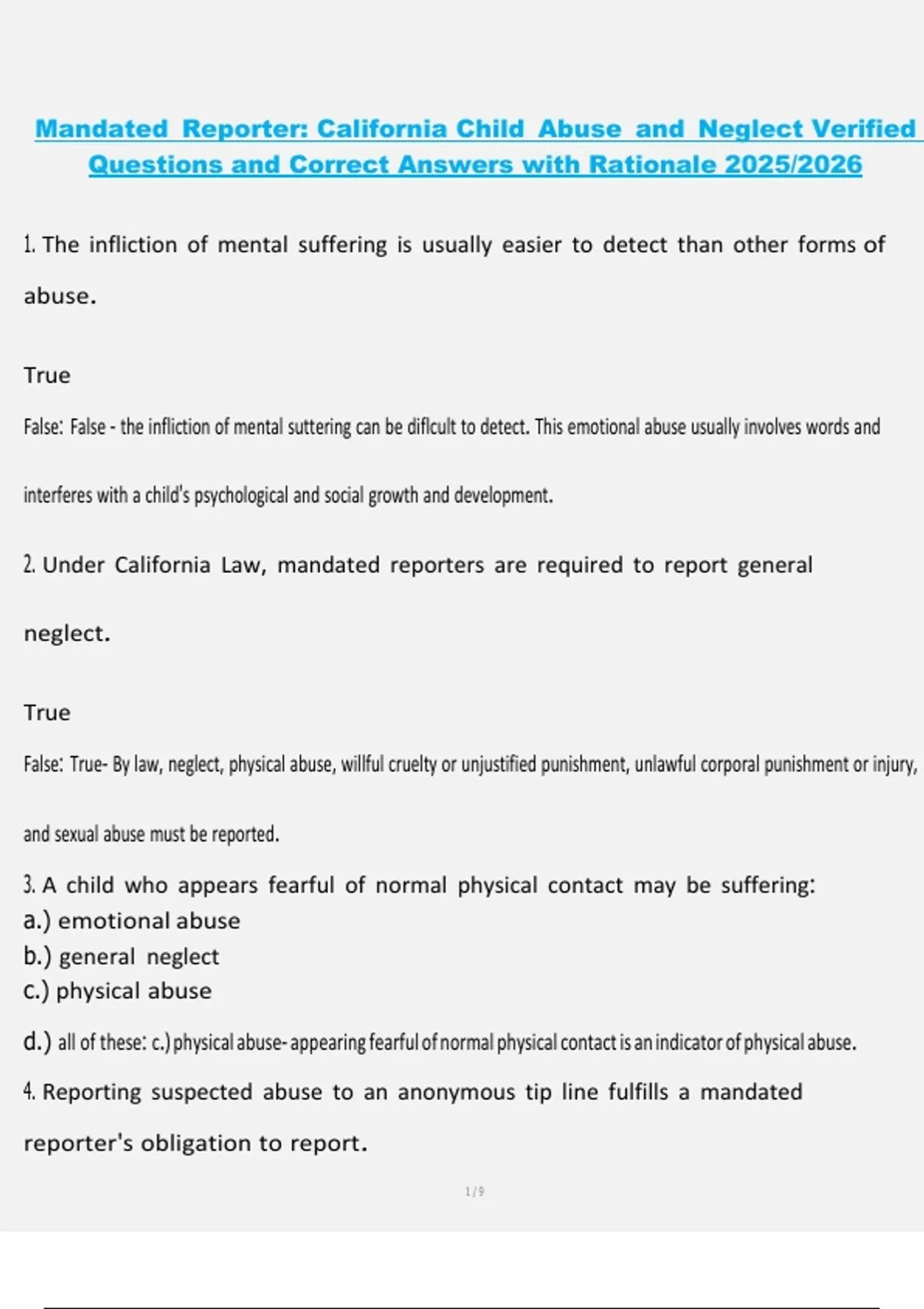False: False - the infliction of mental suttering can be diflcult to detect. This emotional abuse usually involves words and