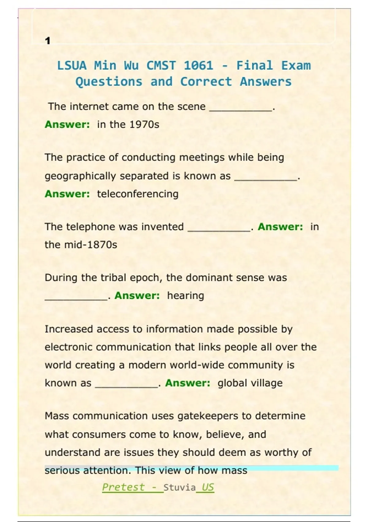 Pretest - Stuvia US