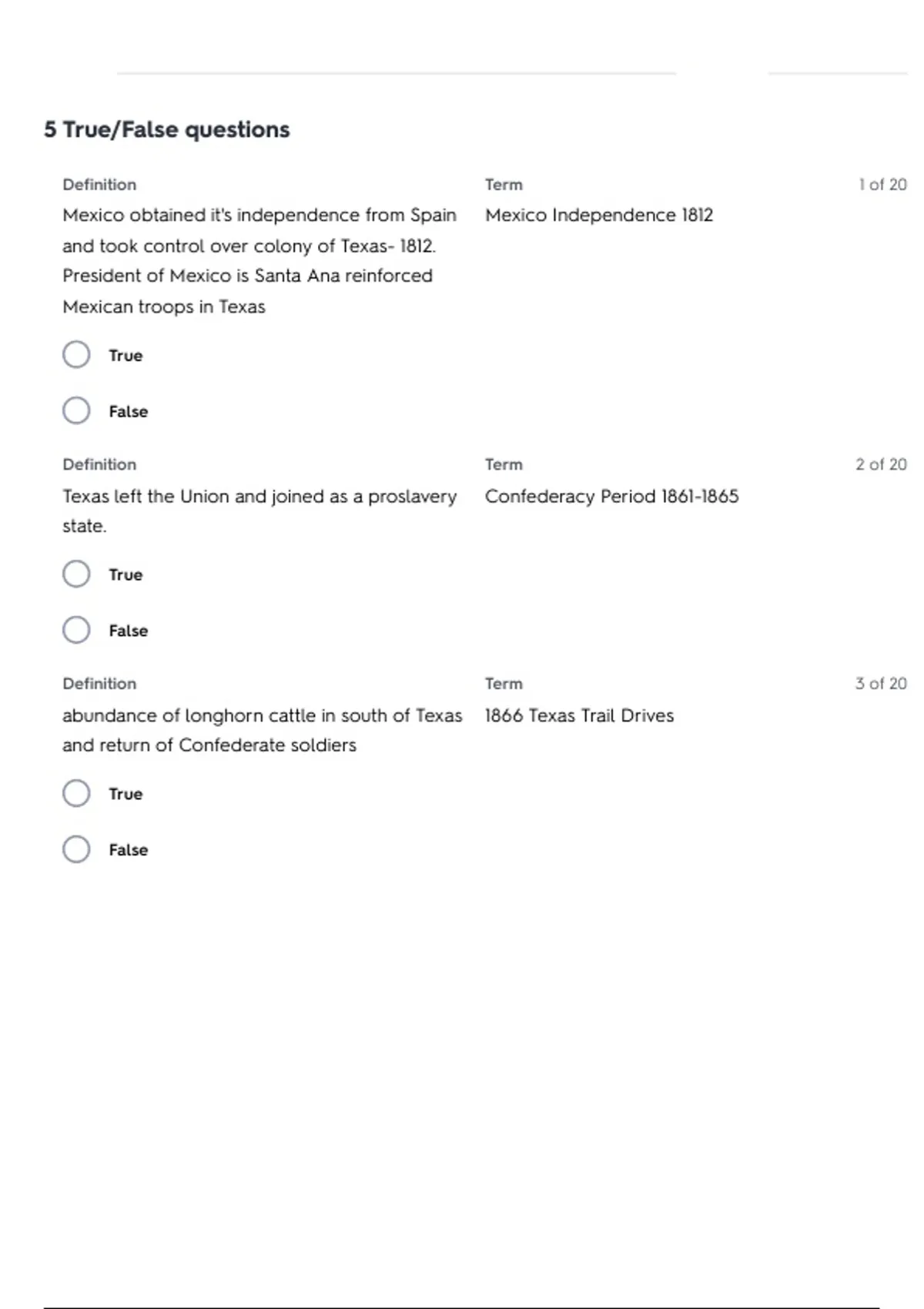 9/29/22, 4:07 PM Test: Texas History | Quizlet
