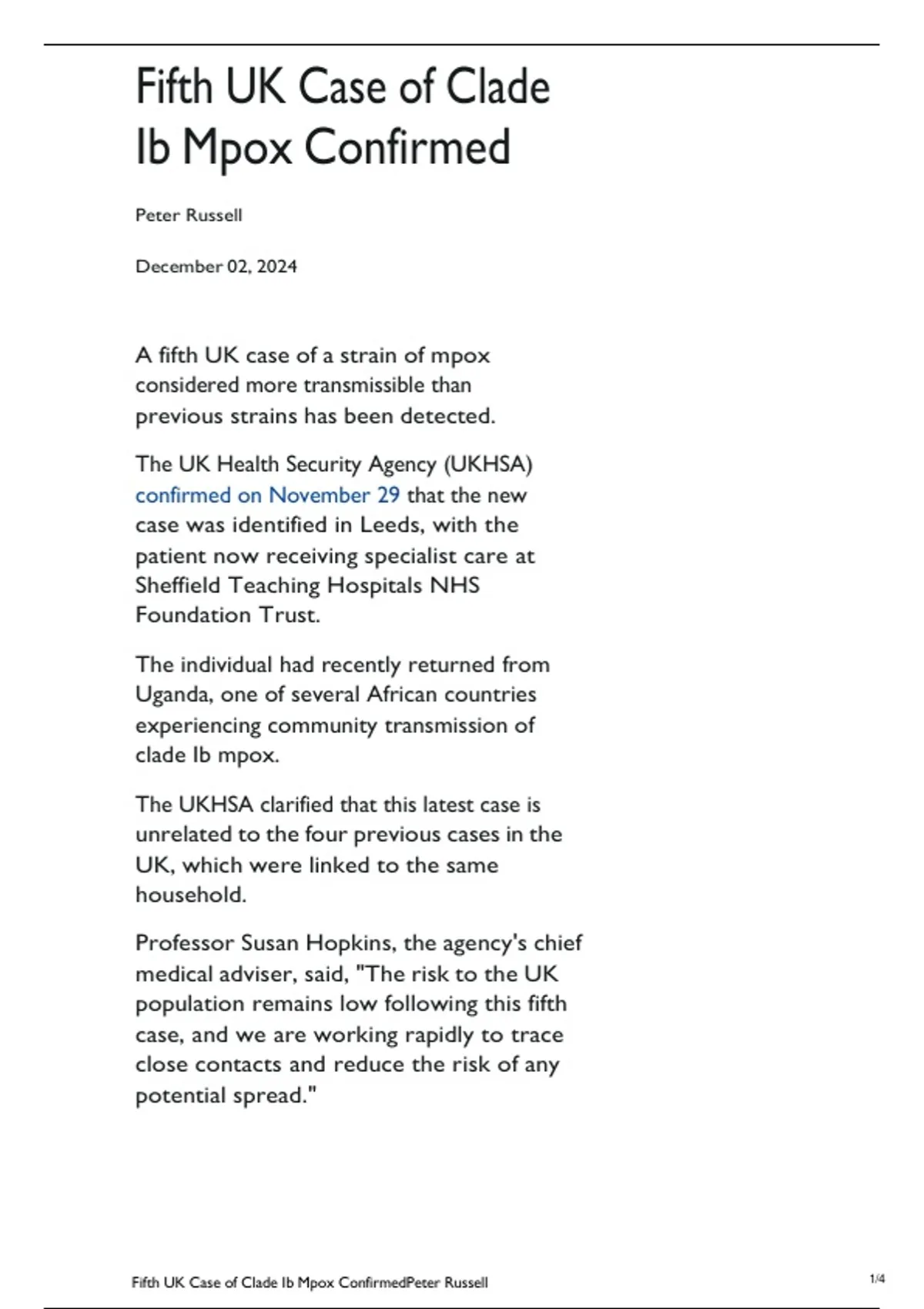Fifth UK Case of Clade Ib Mpox ConfirmedPeter Russell 1/4