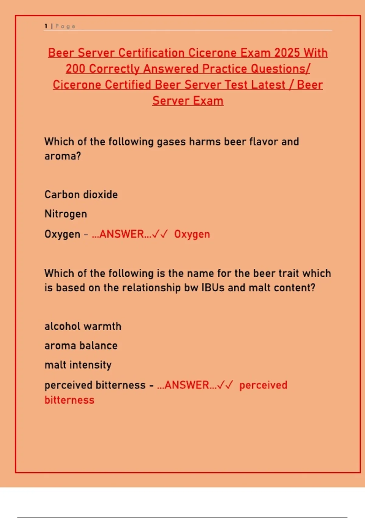 Ace the 2025 Cicerone Certification with this ultimate practice test PDF. This study guide features 200 correctly answered practice questions covering all exam sections: Beer Styles, Flavor & Serving, Brewing & Ingredients, and Beer & Food Pairing. Boost your confidence, identify knowledge gaps, and pass your Certified Cicerone® exam on the first try. Your comprehensive prep starts here.