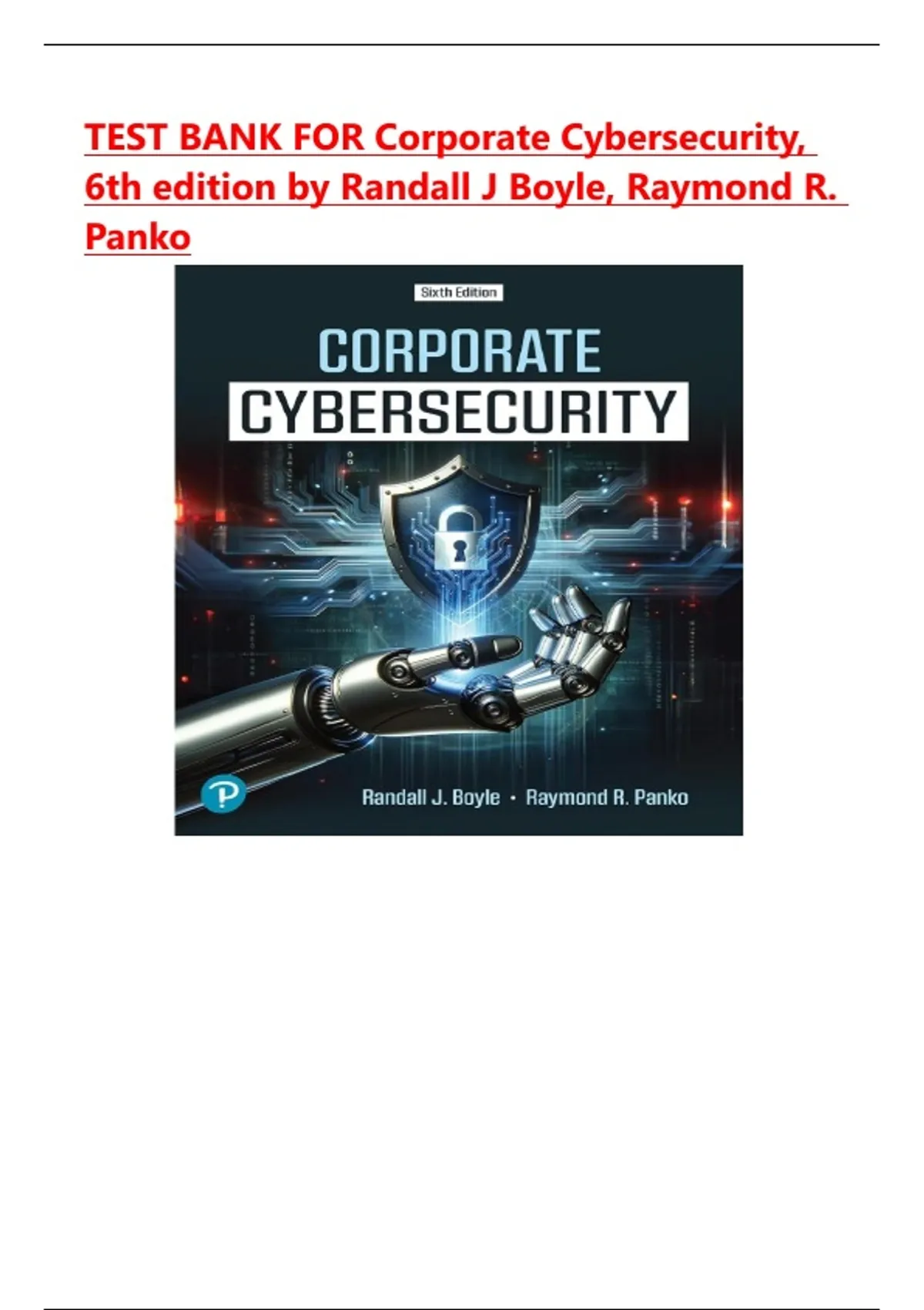TEST BANK FOR Corporate Cybersecurity, 6th edition by Randall J Boyle, Raymond R. Panko by Randall J Boyle, Raymond R. Panko I100% VERIFIED A+ GRADE ASSURED!!!!!NEW LATEST UPDATE!!!!!