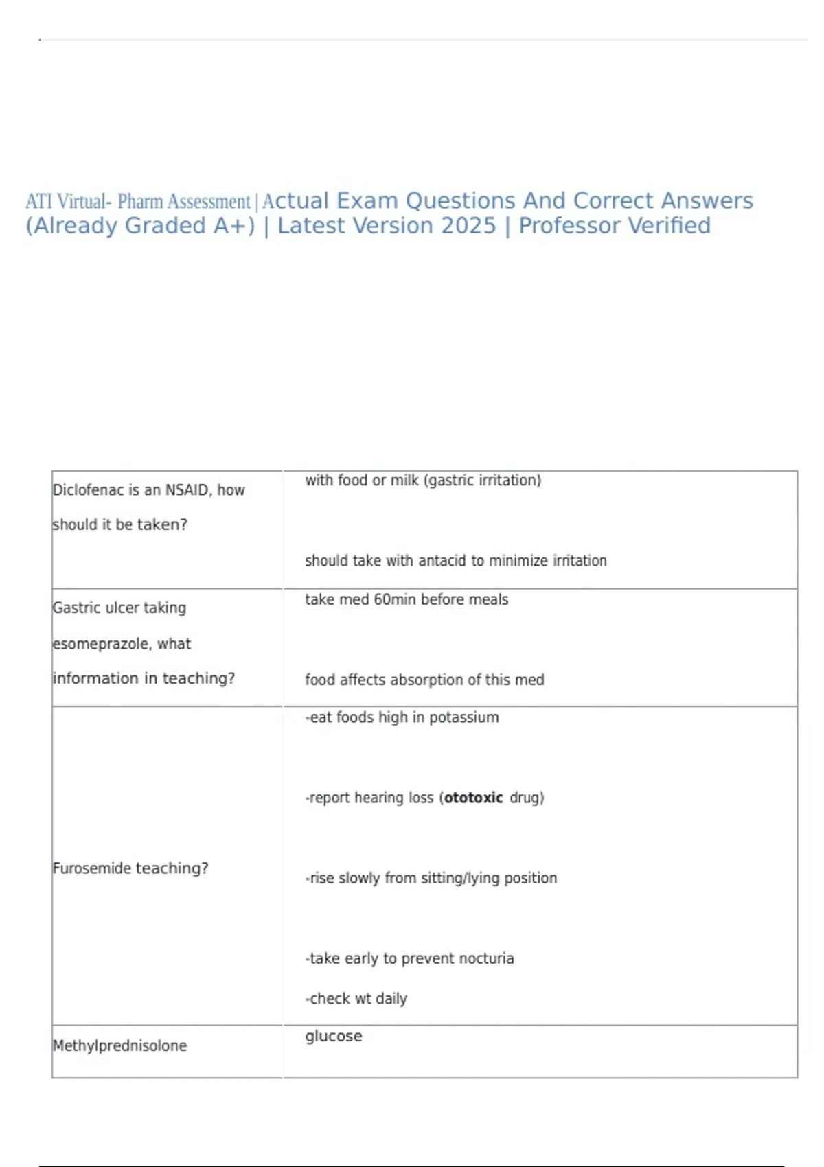 Summary ATI Virtual- Pharm Assessment | Actual Exam Questions And Correct Answers (Already Graded A+) | Latest Version 2025 | Professor Verified