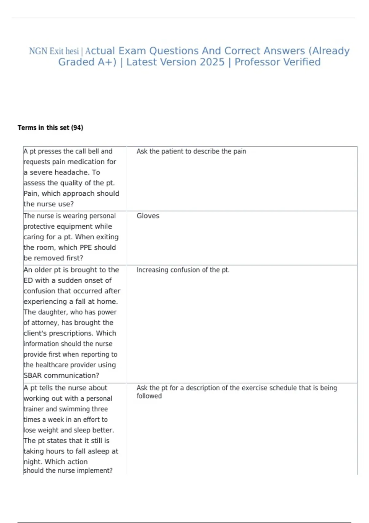 NGN Exit hesi | Actual Exam Questions And Correct Answers (Already Graded A+) | Latest Version 2025 | Professor Verified