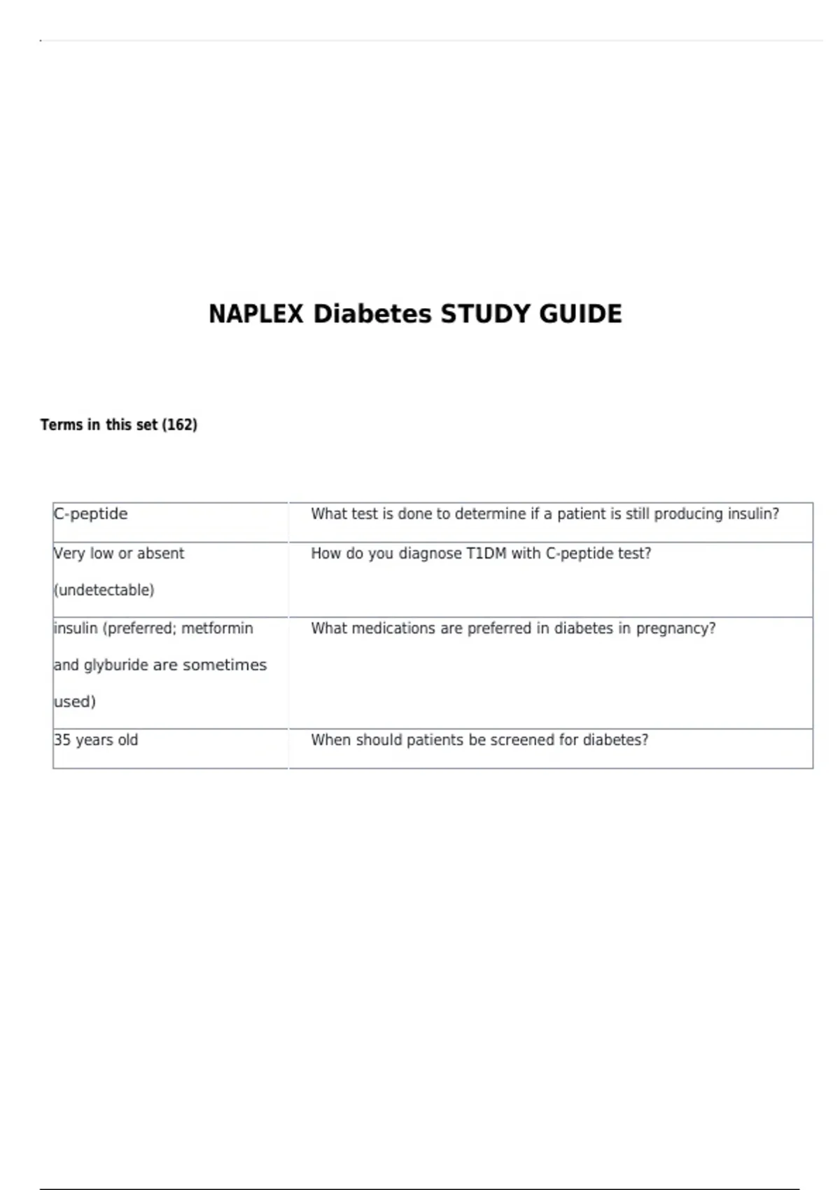 NAPLEX Diabetes STUDY GUIDE