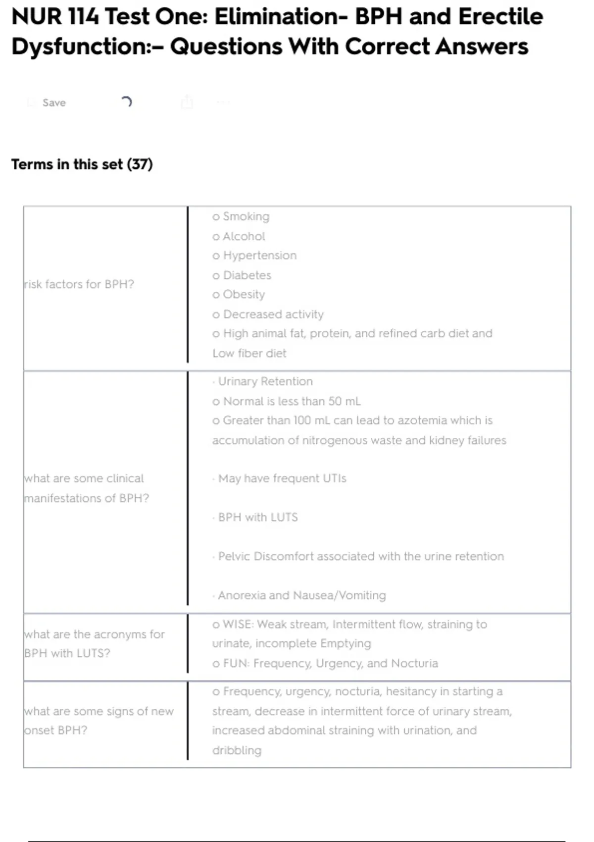o Frequency, urgency, nocturia, hesitancy in starting a