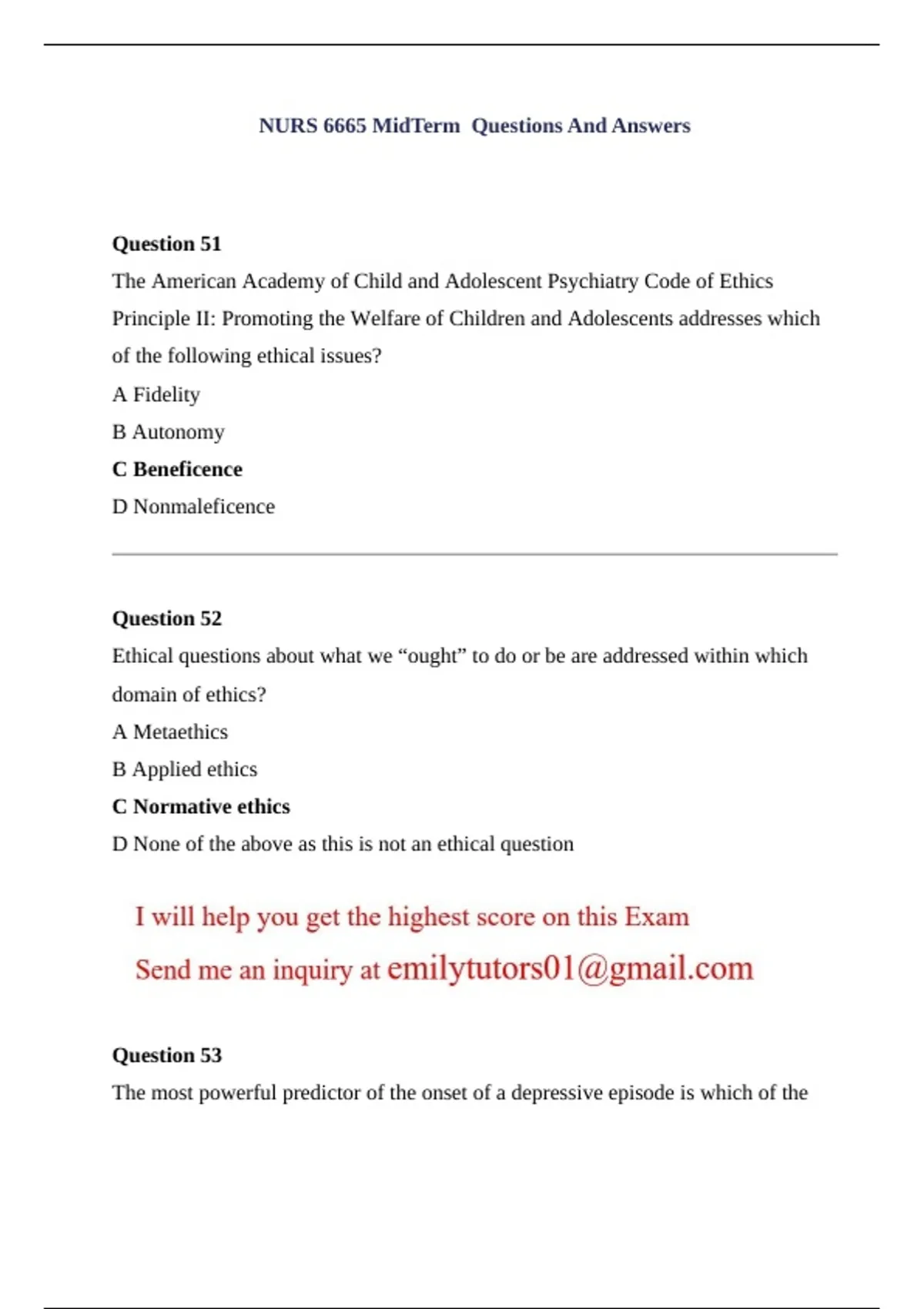 NURS 6665 MidTerm Questions And Answers patrick
