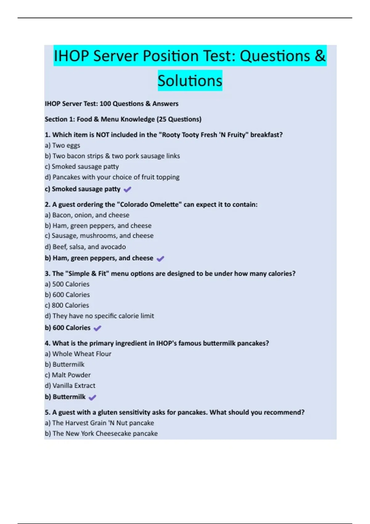 IHOP Server Test: 100 Questions & Answers