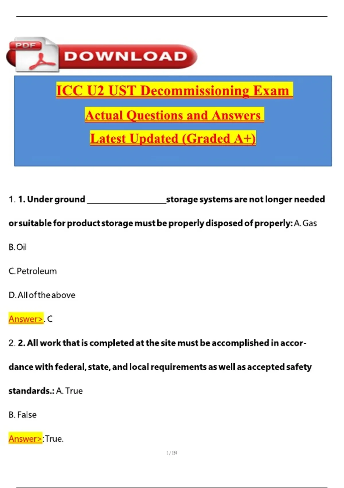 ICC U2 UST Decommissioning Exam Actual Questions and Answers Latest Updated (Graded A+)