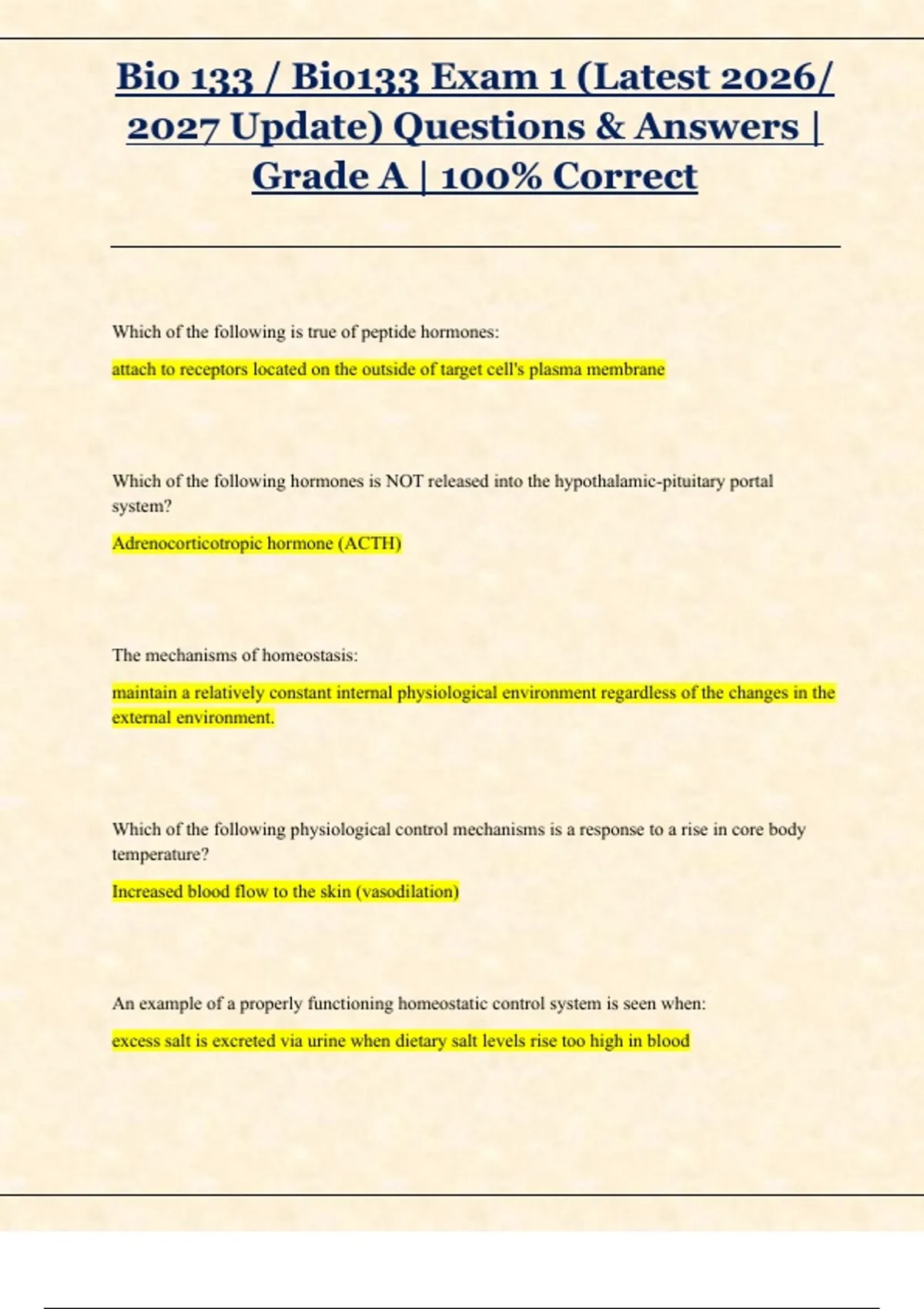 , Bio 133 / Bio133 Exam 1 (Latest 2026/