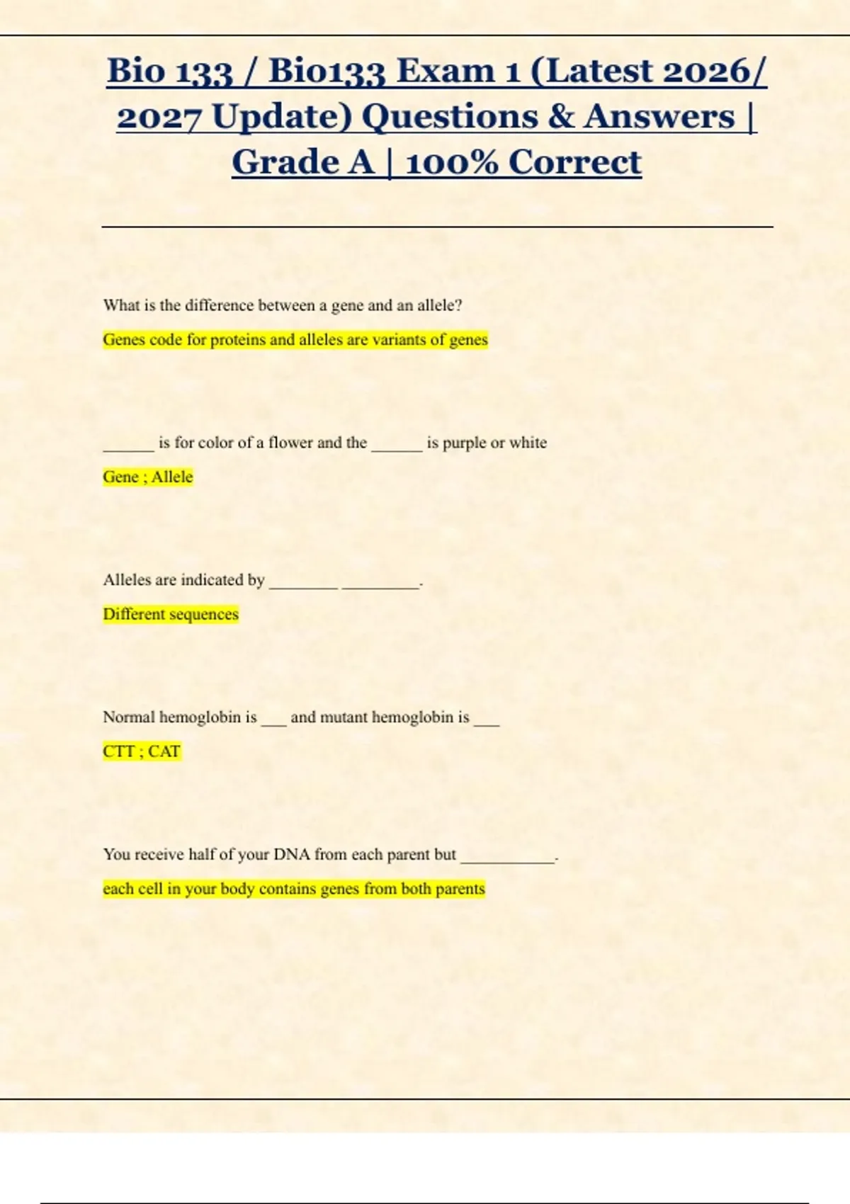 ,Bio 133 / Bio133 Exam 1 (Latest 2026/