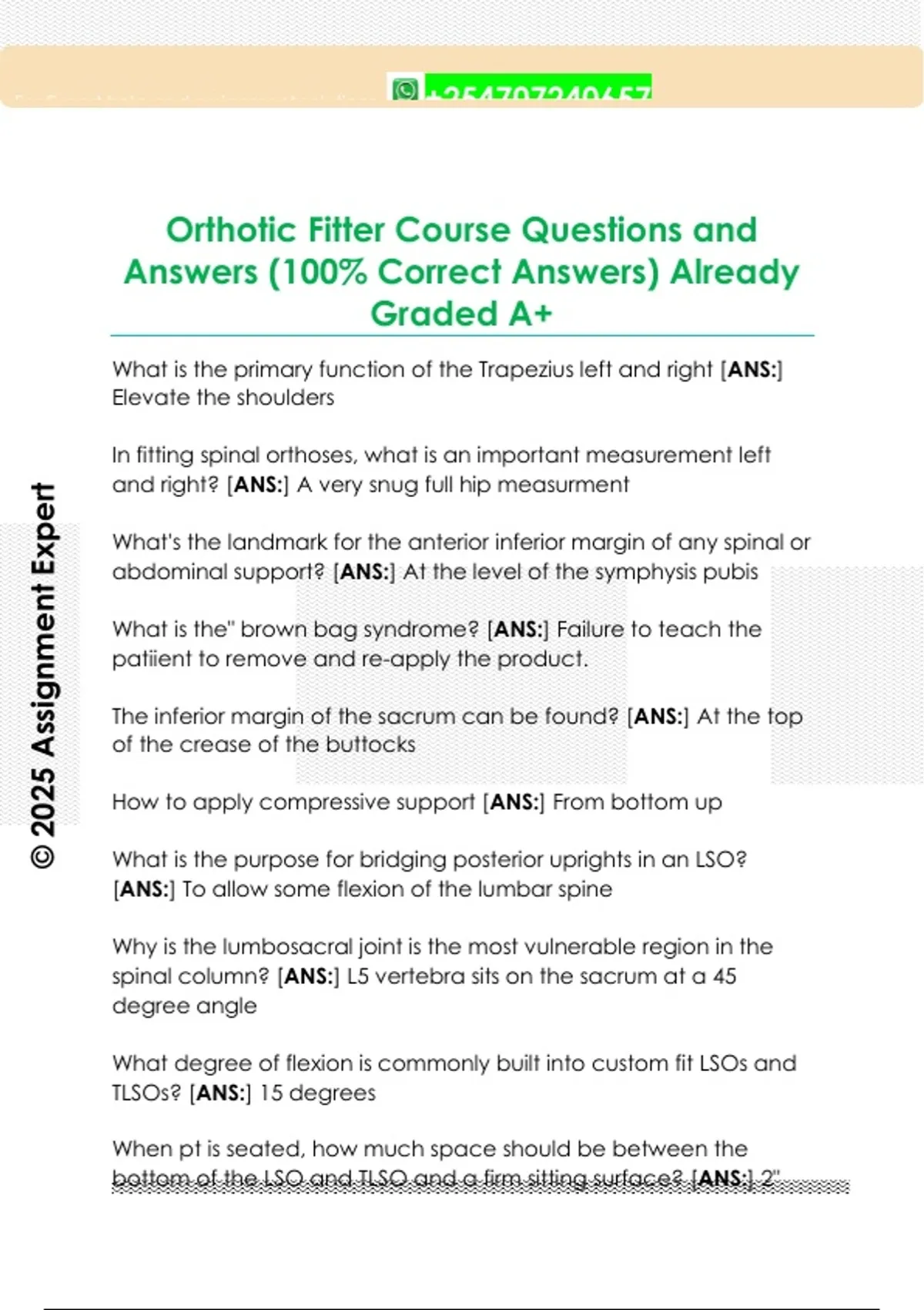 Orthotic Fitter Course Questions and Answers (100% Correct Answers) Already Graded A+