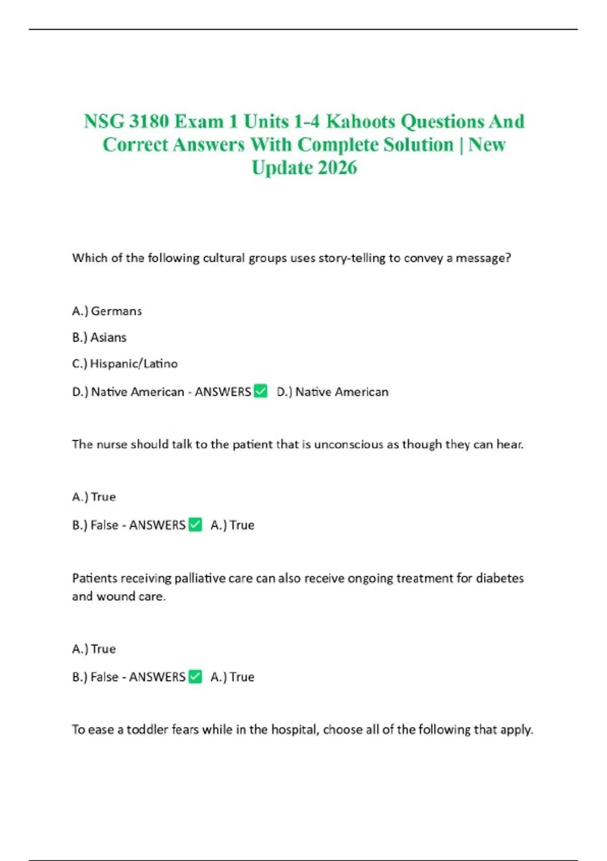 NSG 3180 Exam 1 Units 1-4 Kahoots Questions And Correct Answers With Complete Solution | New Update 2026