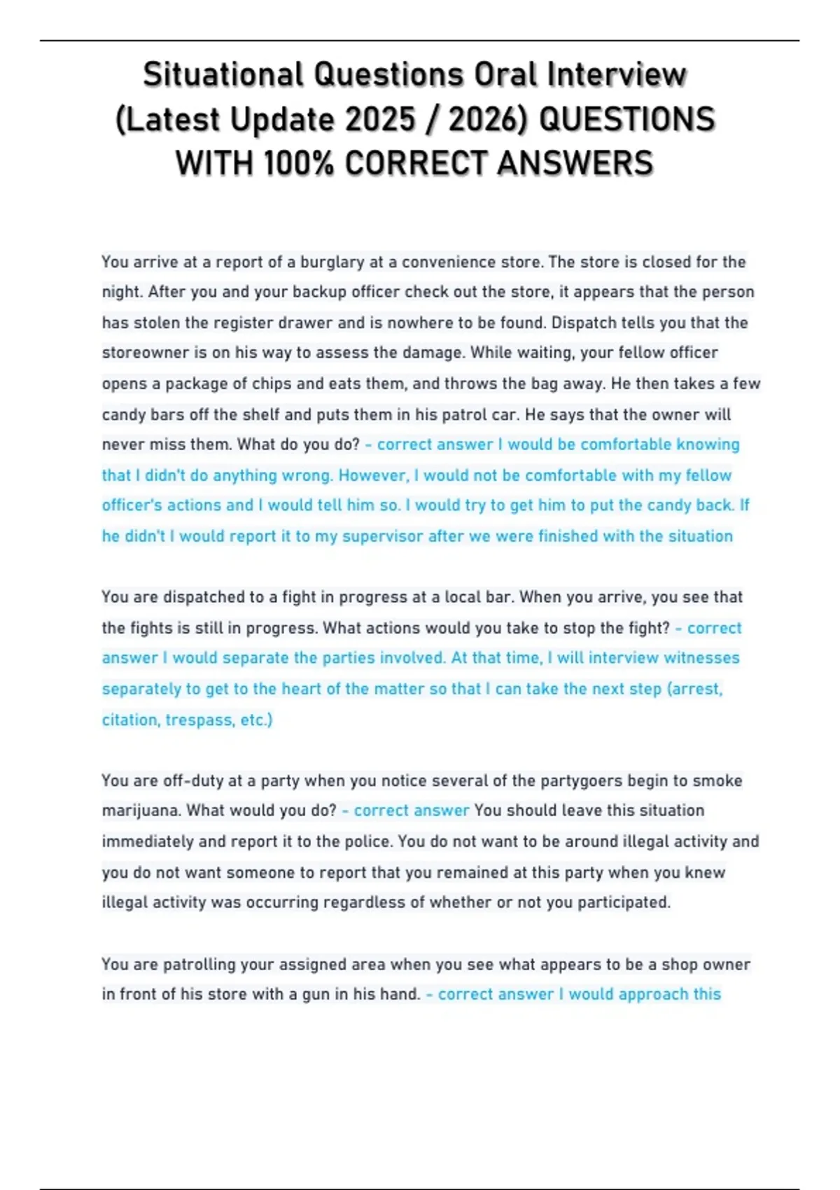 Situational Questions Oral Interview (Latest Update 2025 / 2026) QUESTIONS WITH 100% CORRECT ANSWERS