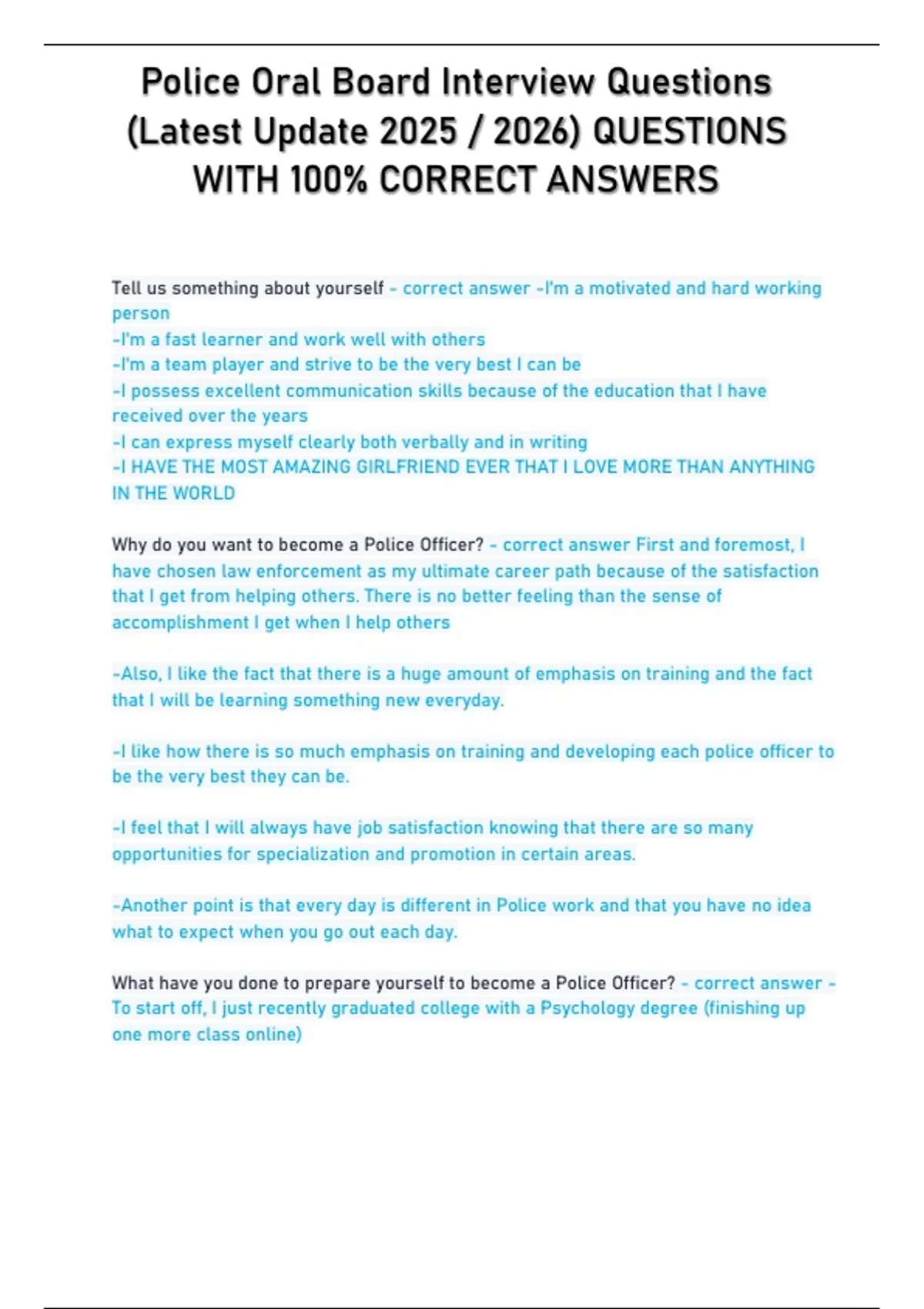 Police Oral Board Interview Questions (Latest Update 2025 / 2026) QUESTIONS WITH 100% CORRECT ANSWERS