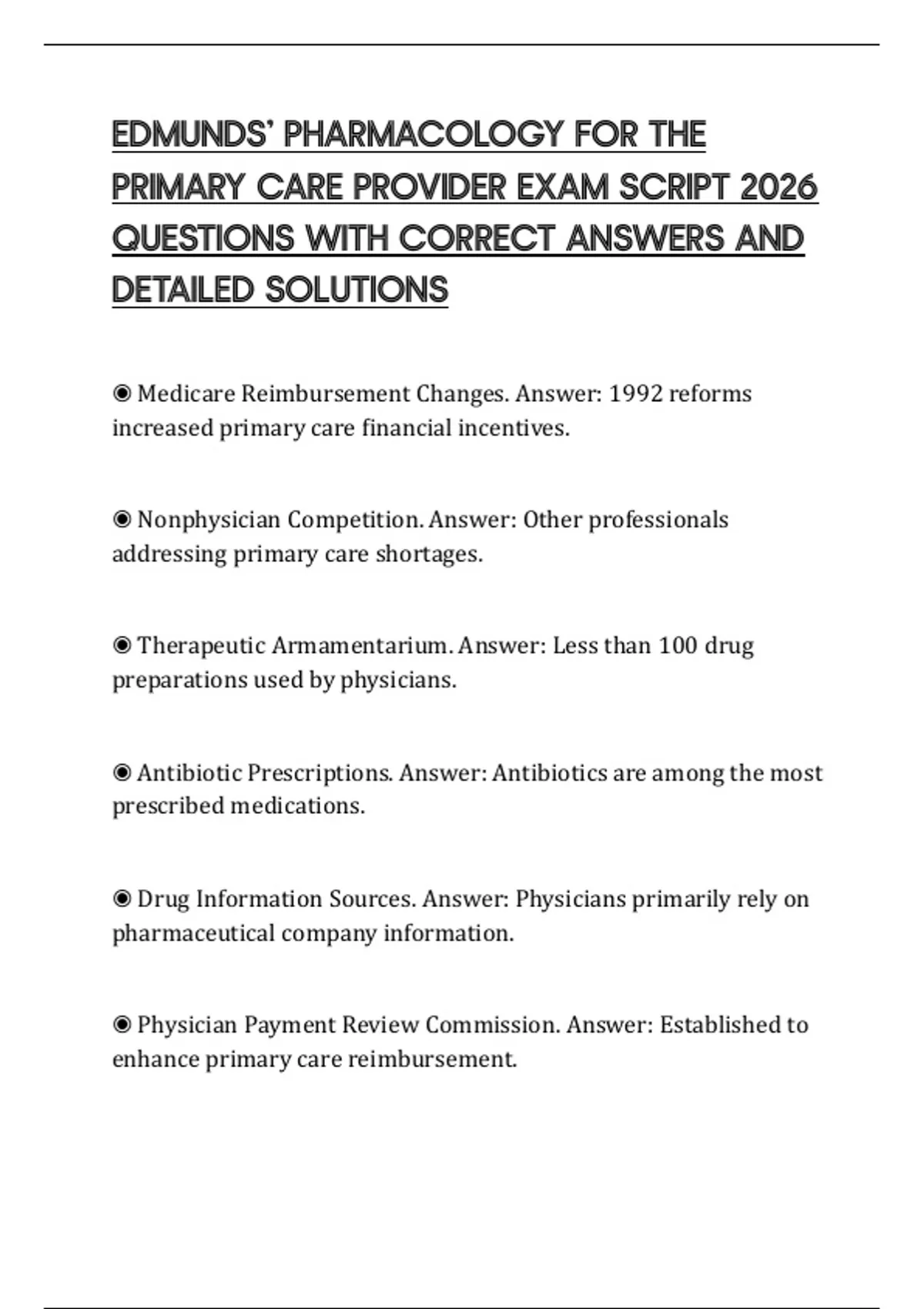 PRIMARY CARE PROVIDER EXAM SCRIPT 2026