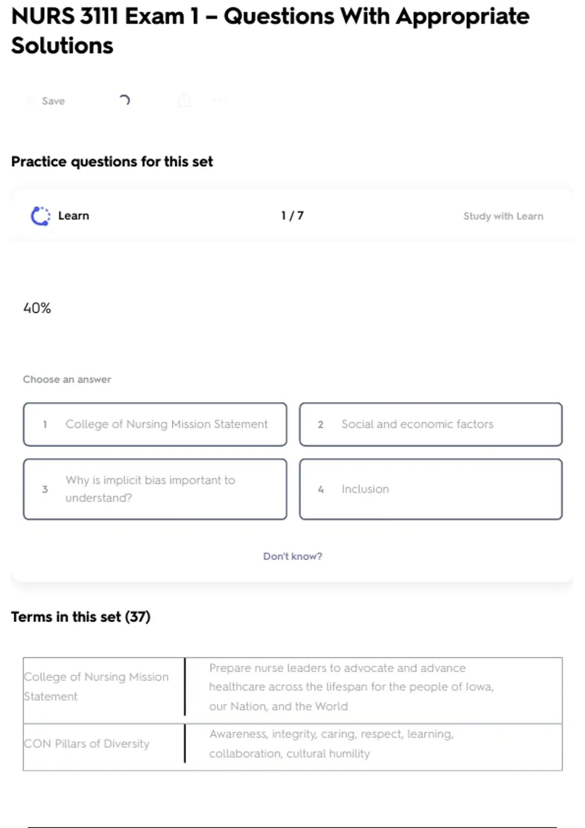NURS 3111 Exam 1 – Questions With Appropriate Solutions