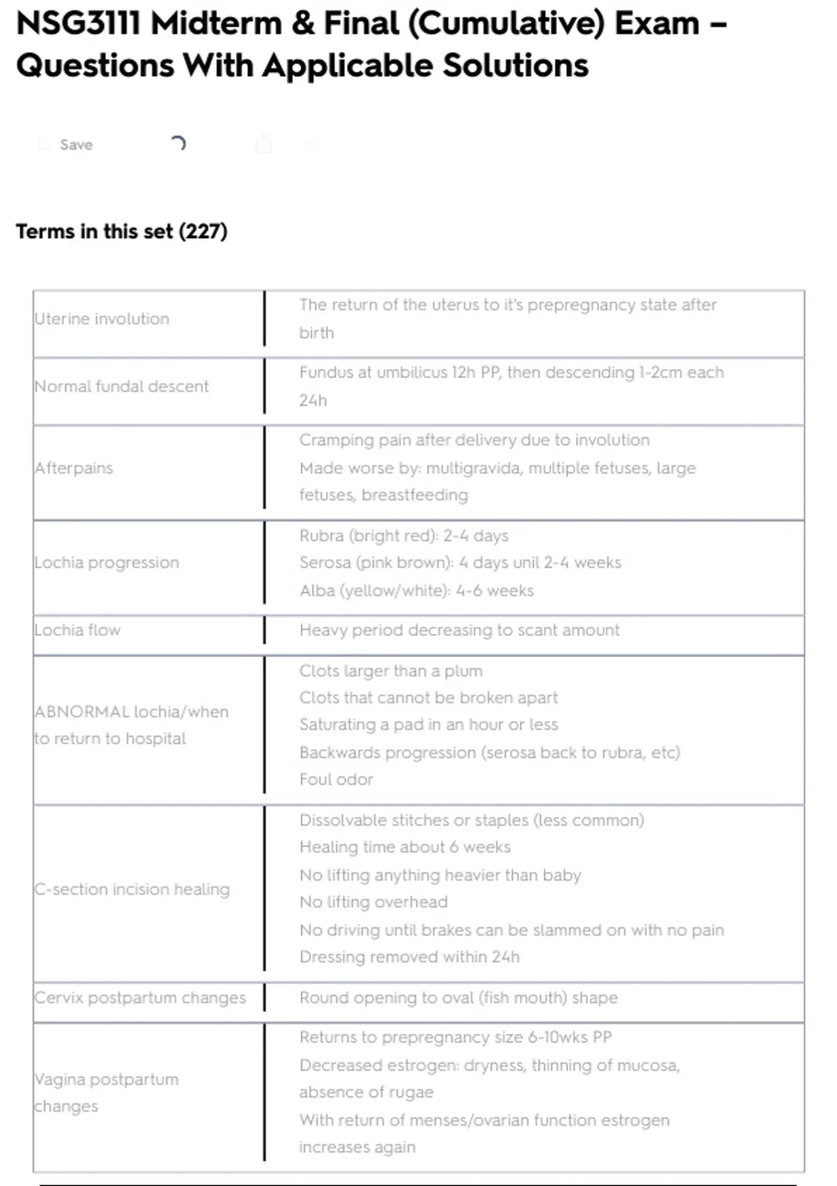 Lochia progression Serosa (pink brown): 4 days unil 2-4 weeks